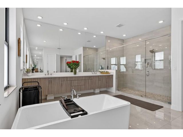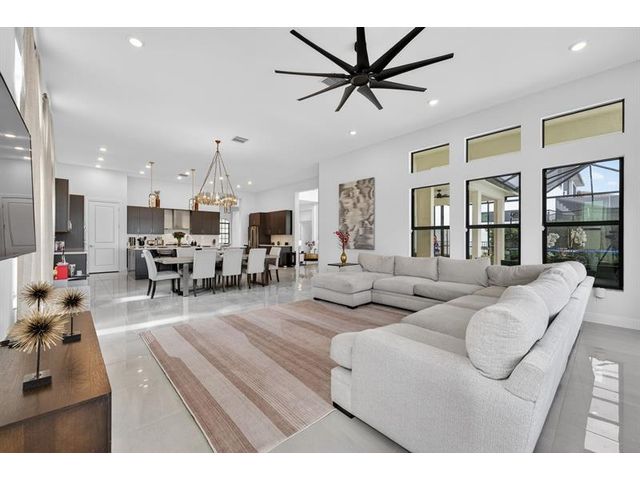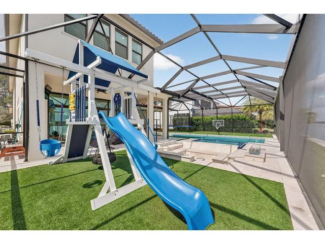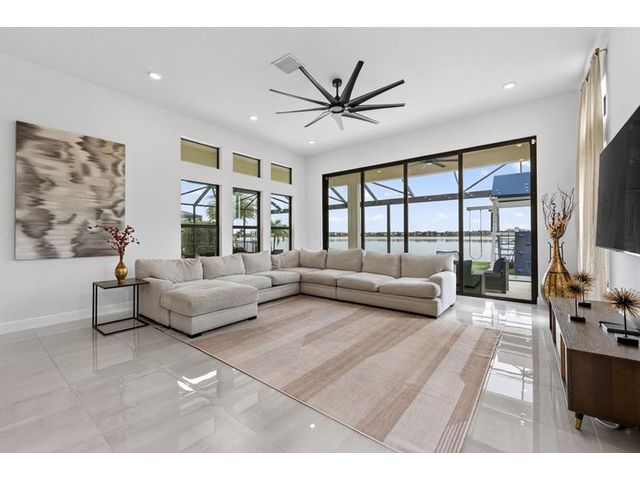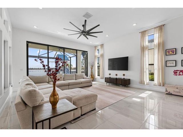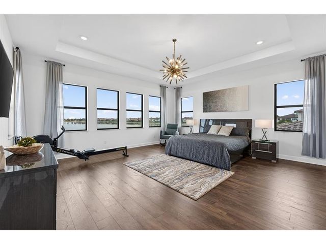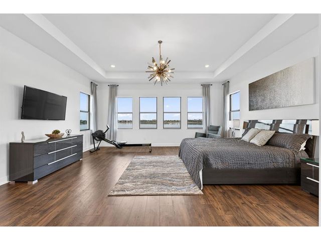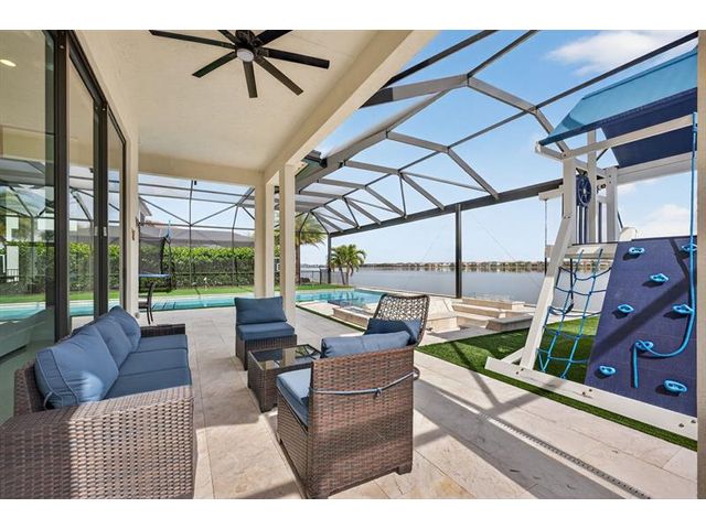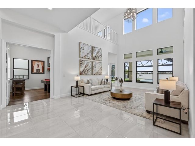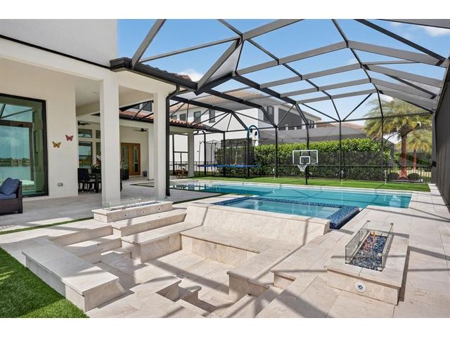 Introducing a massive, exquisite 2-story lakefront home that epitomizes luxury living. This stunning residence features 5 bedrooms, 6 bathrooms, a loft, and a study, along with a grand great room and bright breakfast area. The chef-inspired kitchen boasts a dramatic island and expansive pantry, offering breathtaking water views. The resort-style, screened backyard includes a covered patio, heated saltwater pool and spa, fireplaces, step-down seating areas, a golf putting green, and an artificial turf playground. The second-floor master suite features two walk-in closets and a luxurious master bath with a free-standing tub and glass-enclosed shower. A light-filled loft serves as an ideal game or media space. With panoramic views of 178 acres of lakefront, this home is truly exceptional.