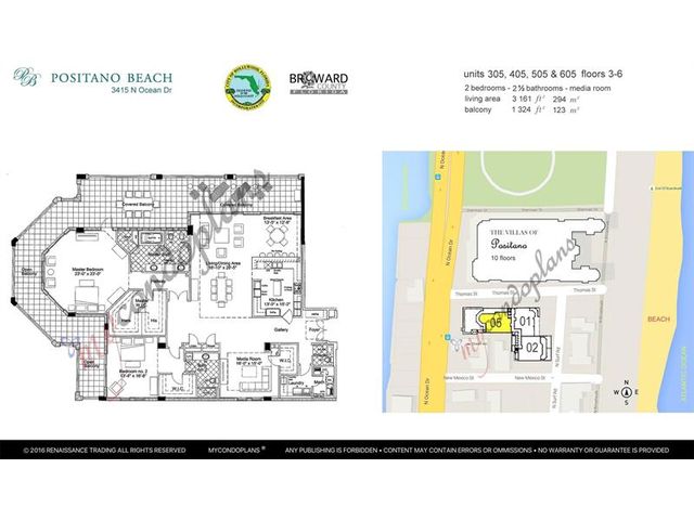 Experience boutique beachfront living at Positano Beach in this modern corner residence, a rare 17-unit midrise set directly on the Hollywood Beach Broadwalk and uniquely positioned on its own point with no shared walls for exceptional privacy. This 3,161-sq-ft, 3-bed/2.5-bath home features a completely opened chef’s kitchen with stainless steel appliances, gas cooking, beverage center, custom closets, and lots of glass. The spacious primary suite includes a sitting area. A spectacular 1,300+ sq ft wraparound balcony captures sweeping Intracoastal and ocean views. Amenities include gym, pool, sauna, social room, direct beach access, valet, two parking spaces, and private storage.