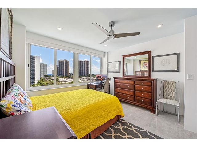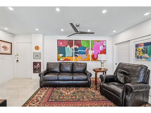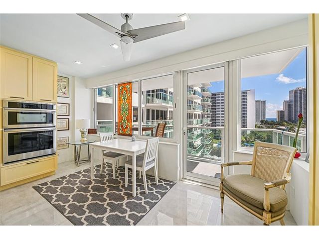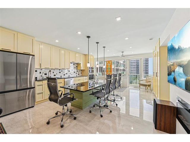 Completely reimagined one-bedroom co-op featuring a truly one-of-a-kind redesigned floor plan, unlike anything else in the building. The expansive open kitchen is the heart of the home, featuring custom cabinetry, stainless steel appliances, abundant storage, and an oversized workspace that doubles as a dining table, perfect for gatherings. The spacious spa-inspired bath offers double sinks and a large glass-enclosed walk-in shower. Enjoy sweeping ocean and skyline views from every window, plus an east-facing balcony ideal for morning coffee or evening breezes. Coral Ridge Towers offers an array of amenities, including on-site management, a pool, a gym, and a putting green. This 55+ Co-Op community is just blocks from the beach, with nearby shopping, grocery stores, and restaurants.