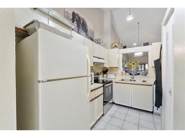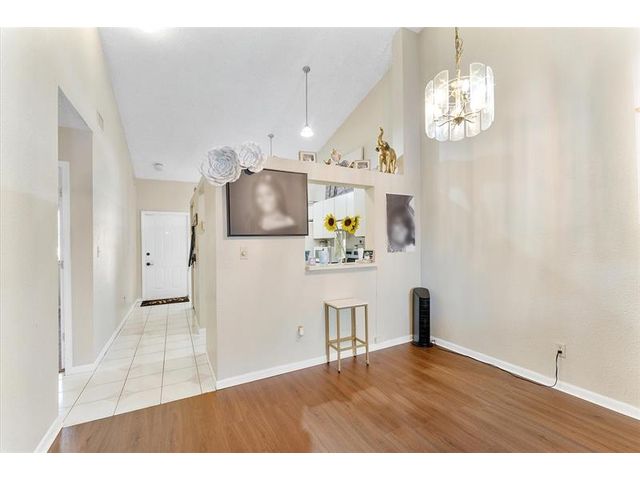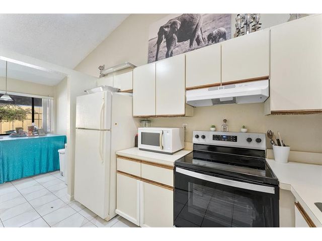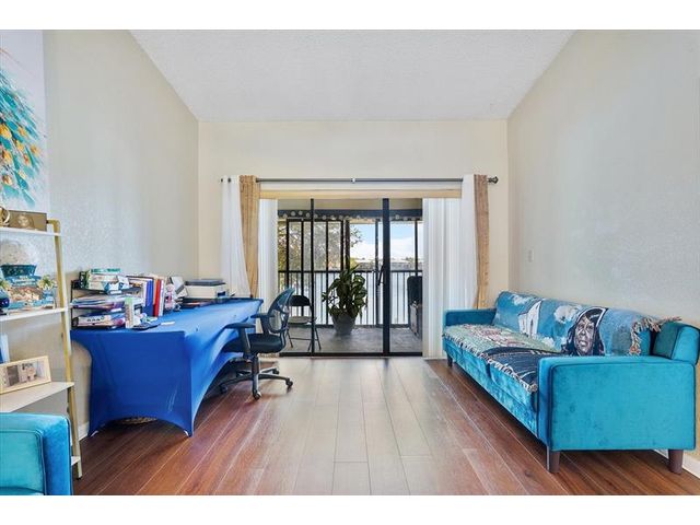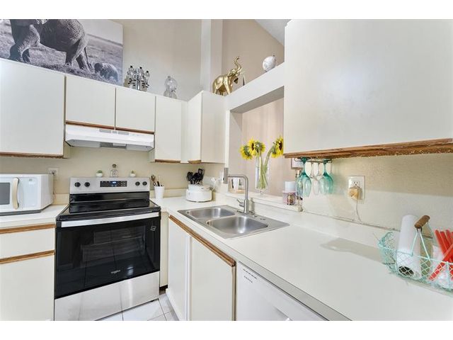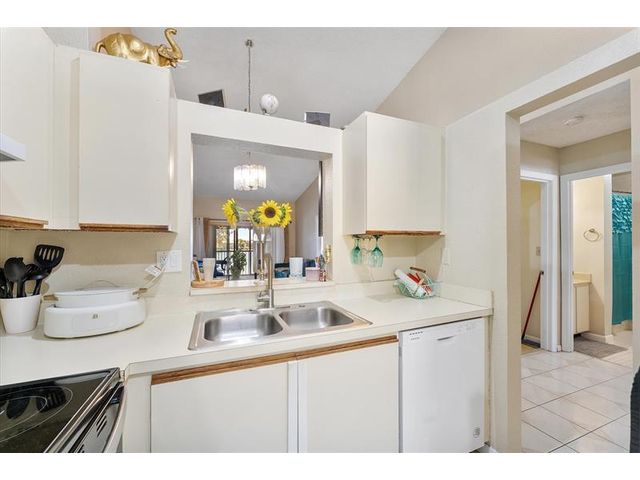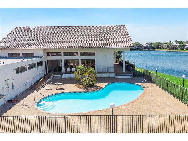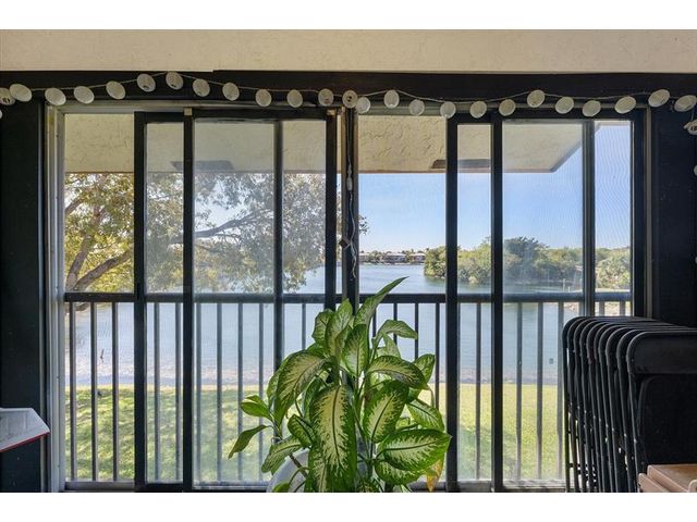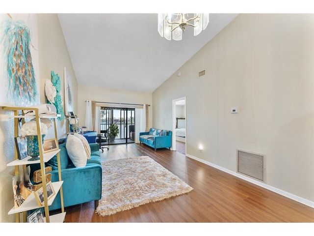 Enjoy peaceful lake views from this inviting 2-bedroom, 2-bath condo in Mira Lago, offering 1,075 square feet of well-planned living space. This light-filled residence features an open layout with volume ceilings that create an airy feel throughout. The primary suite includes a walk-in closet and an updated bath with a tiled shower and floor. Wood flooring enhances the main living areas, and the kitchen includes a brand-new stove. Relax on the screened patio overlooking the water. Located in a gated community with a pool and convenient access to shopping, dining, and well positioned near major routes.