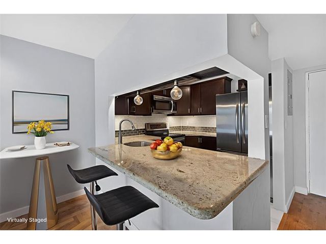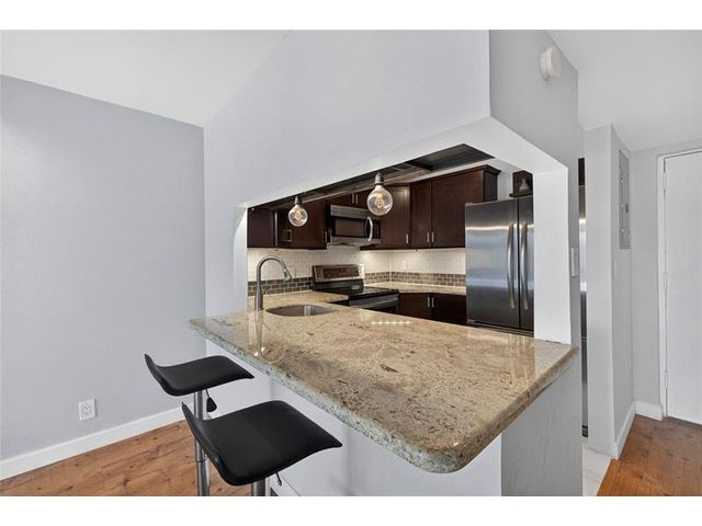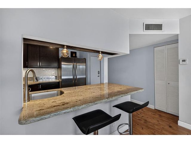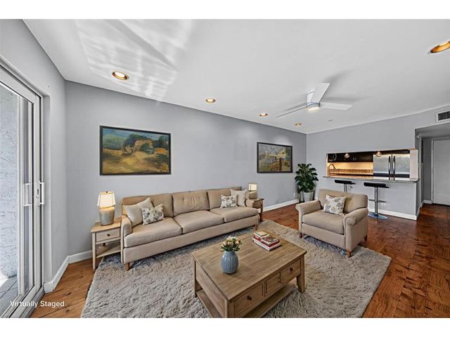 Location is often high on a buyer list and this one has it! Steps to vibrant Wilton Drive and close to shopping, the beach, downtown and everything convenient. Second, an amazing and tranquil water view with a spacious covered balcony. Beautifully updated kitchen with granite counters, wood cabinets, glass backsplash, stainless steel appliances, modern appliances and bar seating. Wood style laminate flooring, impact windows and views of the river from every room! Generous sized primary suite with walk in closet, and tasteful bath. Recessed lighting, ceiling fans, Plantation shutters, and more. Lushly landscaped grounds, sparkling blue pool, community room and BBQ area overlooking the river. Additional storage area & laundry on every floor. Financially sound and on-site manager.
