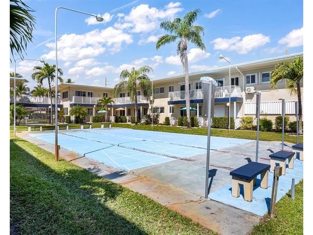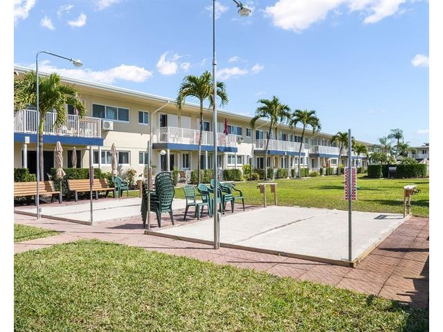Renovated, well-kept 1st-floor unit in all- age community of Sunshine Villas, Dania Beach. Ceramic tile throughout, built-in cabinetry, and a seamless open concept layout. Spacious bedroom and living area with a pristine, charming bathroom. Enjoy courtyard views and front-row access to shuffleboard in a bright, airy space perfect for contemporary living within a welcoming community. A serene retreat in a well-maintained community. Come see this unit, and make it your very own.