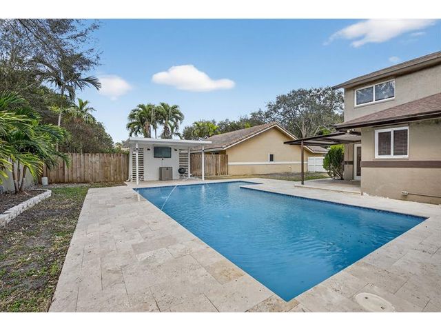 Welcome to refined living in the highly sought after Beaumont Estates -an intimate family-friendly enclave of just 29 homes in the heart of Plantation. This beautifully updated, 2 car garage, 2126 sq ft under air, 4bed/2.5bath, with 3 bedrooms upstairs and the primary suite on 1st level. The home showcases a tastefully renovated kitchen and fully updated bathrooms, blending modern style with everyday comfort. Once you step outside you will find a private backyard retreat featuring a sparkling pool and elegant travertine patio (2022)- perfect for family gatherings and entertainment. Complete with Impact Windows and Doors throughout, AC 2021, Roof 2016 and new electrical panel with generator hookup. Completely move in ready. Close to schools, shopping and restaurants. Rare find.