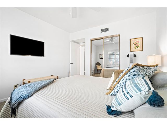 Beautiful 2/2 corner unit offers water views from every room & screened in balcony. Located on canal with fixed bridges and ocean access. Open concept design features include ample kitchen cabinets, countertop space and snack bar. Updated laminate flooring and bedroom carpeting, fixtures and plantation shutters. Neutral palette throughout. A/C replaced 2021, Water Heater 2021 washer/dryer 2022. Small pets allowed. Assessments have been paid by seller. Association requires minimum credit score of 700.