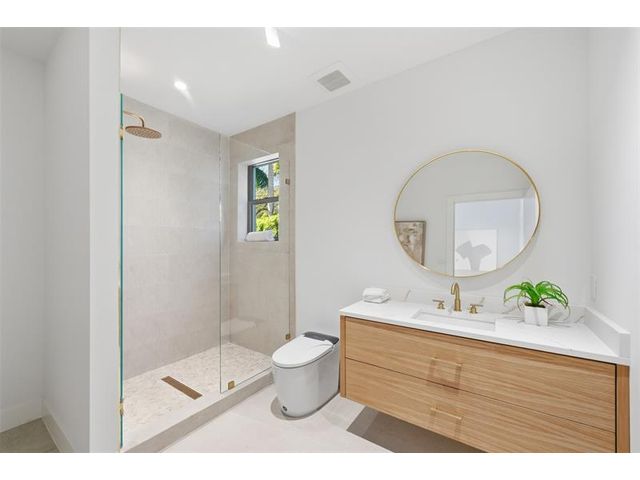 Brand New Construction from Ground up. Beautiful Waterfront home on Lake Mangonia w. resort style backyard and pool. Tons of covered patio space to get out of the sun and massive fenced in paver patio. Outside of fence has a giant yard for sports and kids to play. 3,800sqft home with 10ft ceilings throughout and 20ft in the living/tv area. 20ft TV wall. Smart toilets in full baths. 2 Master bedrooms w bathtubs and LED mirrors. Tray ceilings in master bed and in dining area. LED in master closets and kitchen. 2 Sub Zero fridges. Mud room off garage with 2nd fridge. Private gated community with 24hour security and access to tennis courts. Located near the Palm Beach Outlet mall, fine dining in Palm Beach, I95, Palm Beach Airport, championship golf courses & 10 minutes to downtown West Palm