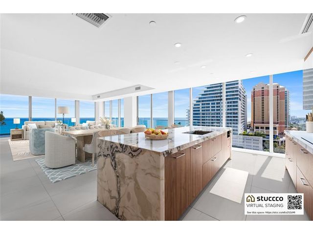 Residence 1002 at Selene invites you to experience elevated oceanfront living with sweeping Atlantic, Intracoastal, and skyline views. Never lived in and ready for its first owner, this 3BD + den, 3.5BA flow-through "Tiffany" showcases customized interiors with upgraded wall finishings and striking bookmatched kitchen countertops and Wolf & Sub-Zero appliances. Expansive living areas and oversized terraces create seamless indoor-outdoor living—perfect for sunrise mornings and sunset evenings. Custom countertops continue in all baths, and the primary suite offers terrace access and a spa-inspired retreat. Pet-friendly with resort-style amenities including an oceanfront pool, lap pool, fitness center, social lounges, and concierge. Includes one mezzanine self-parking space + 1 valet spot.