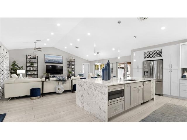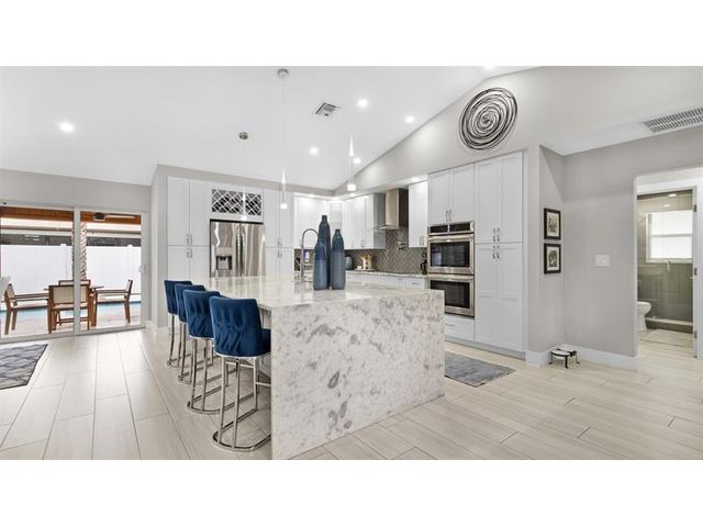 Experience the ultimate Florida lifestyle in this meticulously maintained home. Situated just minutes from the award winning Deerfield Beach, this home offers that "new construction feel" without the new construction price tag. Featuring soaring vaulted ceilings and an expansive open floor plan that lives much larger than its footprint. The beautifully updated kitchen serves as the centerpiece, with a massive island, solid wood cabinetry & premium stainless appliances. The Outdoor Oasis (Completed 2020) is a private paradise featuring a Heated Pool, travertine pavers, Pro-Grade Turf and a private putting green. Lush Landscaping lined with Canary Palms. Completely turn-key with LED lighting, updated bathrooms, tankless water heater and full impact windows and doors for total peace of mind.