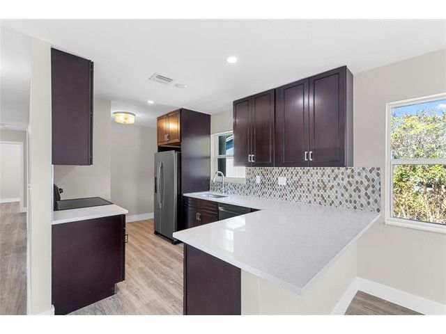 Beautifully updated 4-bedroom, 2-bath single-family home featuring a new roof, fresh interior and exterior paint, and a lavish kitchen complete with stainless steel appliances. The home offers wood flooring throughout, along with porcelain bathroom flooring and matching wall tiles for a clean, contemporary finish. Additional upgrades includes new washer and dryer combo, delivering a truly move-in-ready experience. Centrally located near shopping, beaches, and major expressways, this home provides the perfect blend of comfort, style, and convenience.