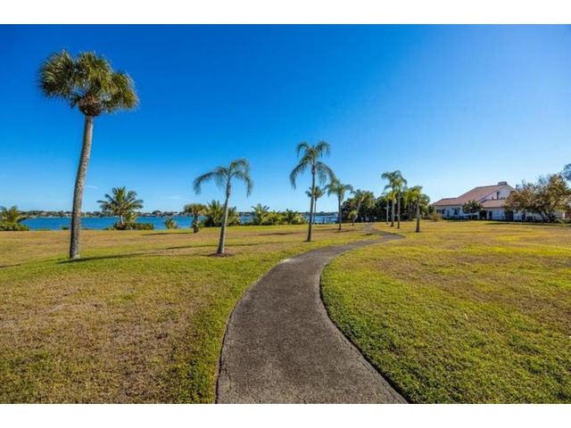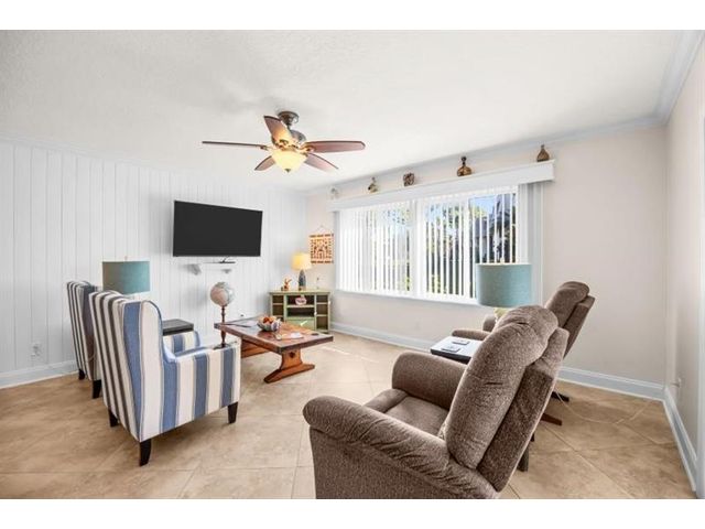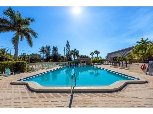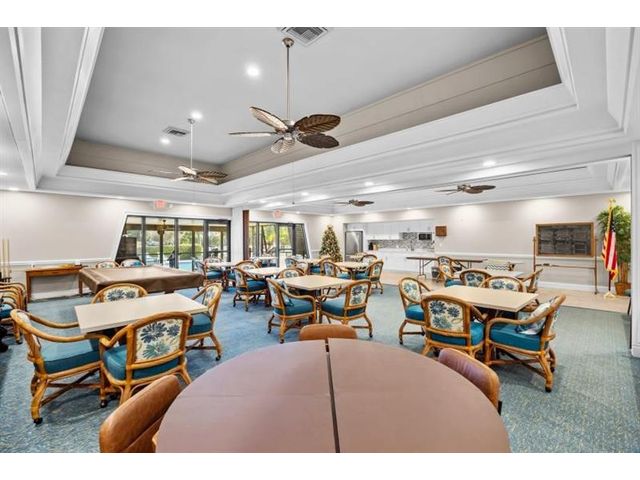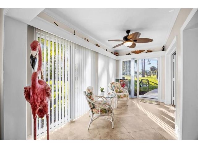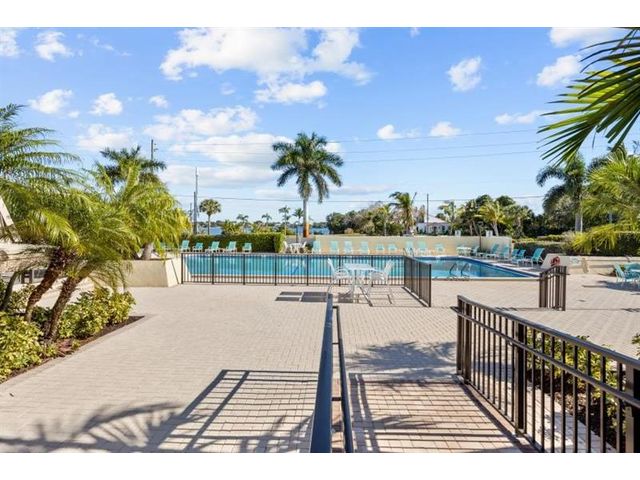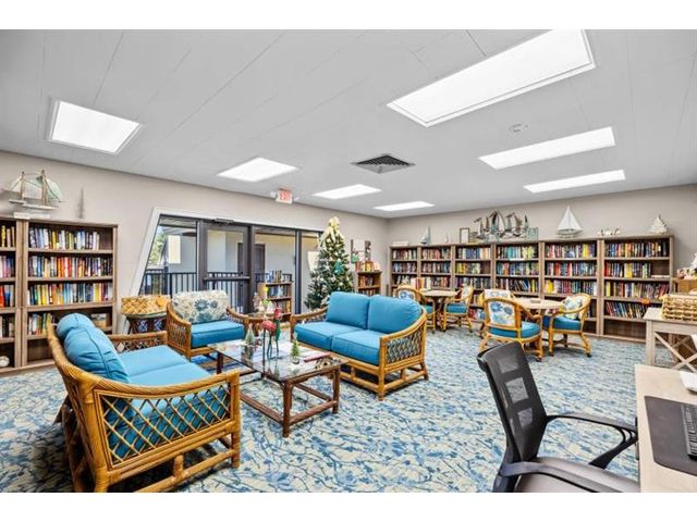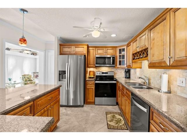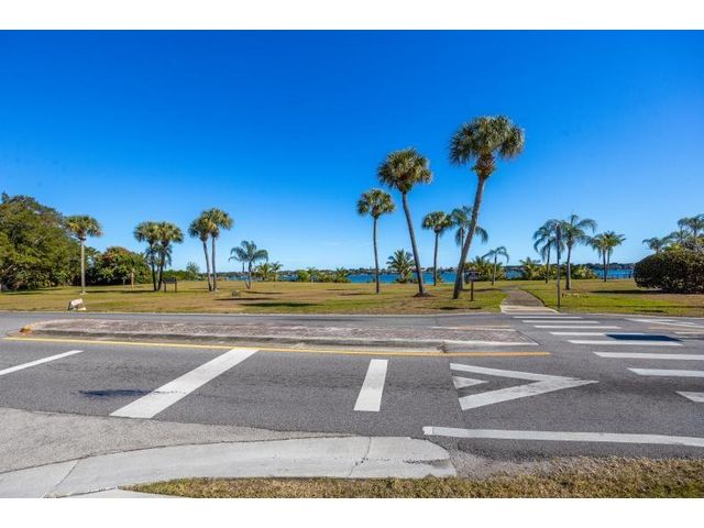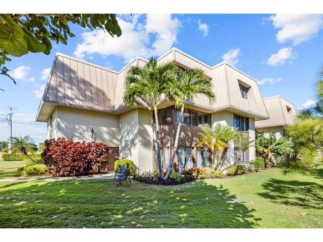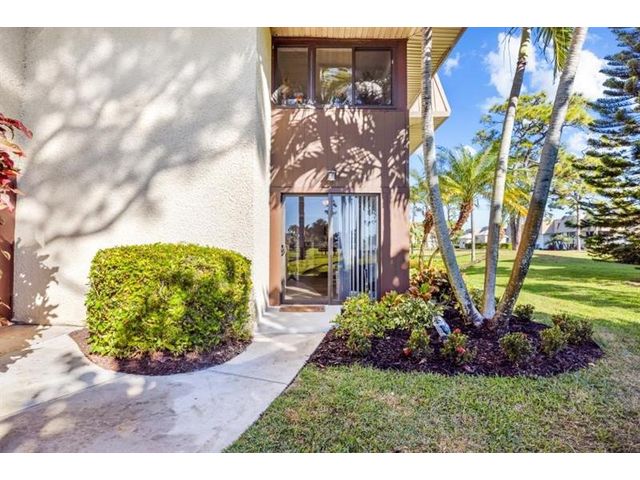 Easy access first floor, end unit condo, private entrance, convenient parking, 55+. Pet free no smoking building. Restricted parking for PICKUP TRUCK (Ford F150 or equivalent) Totally remodeled, split layout, custom gardens. 24 travertine look floor tile living areas/baths, carpet bedrooms. Granite counters, over sized island w/electric. SS 2 year old appliances w/10 year transferable warranty. Full size w/d in unit. A/C 2023. Knock down ceilings (no popcorn), crown, baseboard, wood trim all around. Impact windows/sliding doors, screens for all. Over size primary bathroom/shower. Building supplied water/hot water (no tank needed). Work shop, locked storage. Amenities: community dock for kayaking, fishing, etc. 3 pools Free internet/WI-FI. Clubhouse, library, card room, pickle ball, tennis