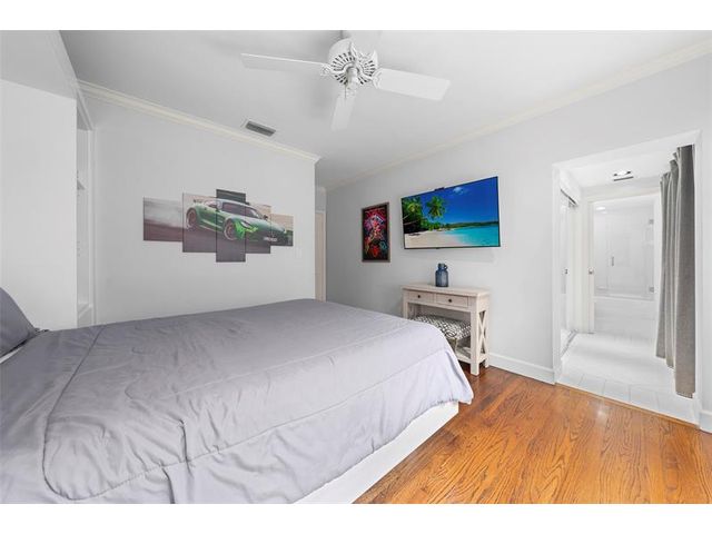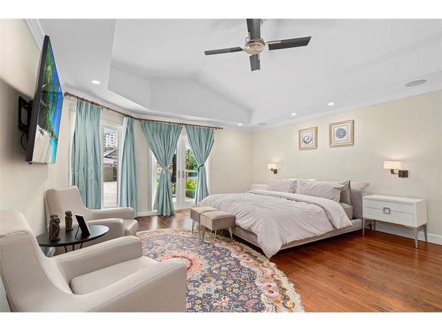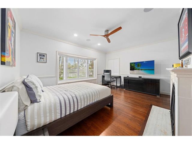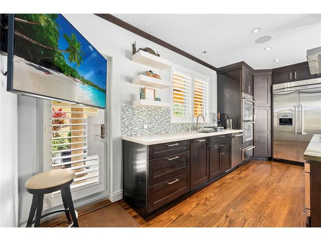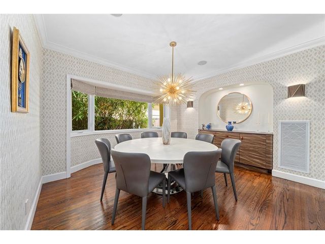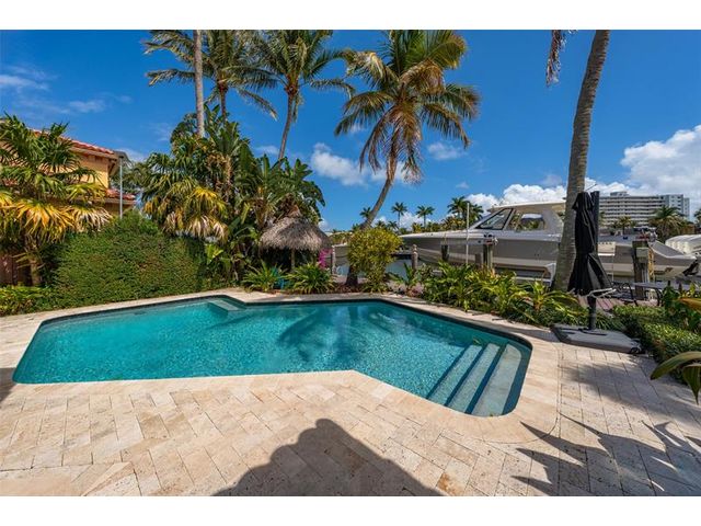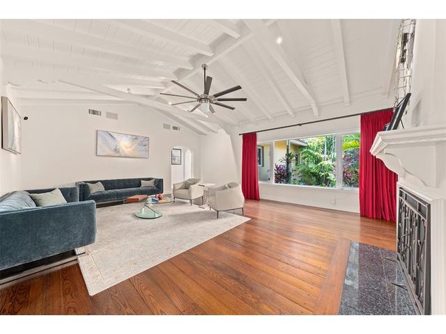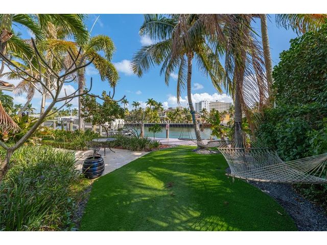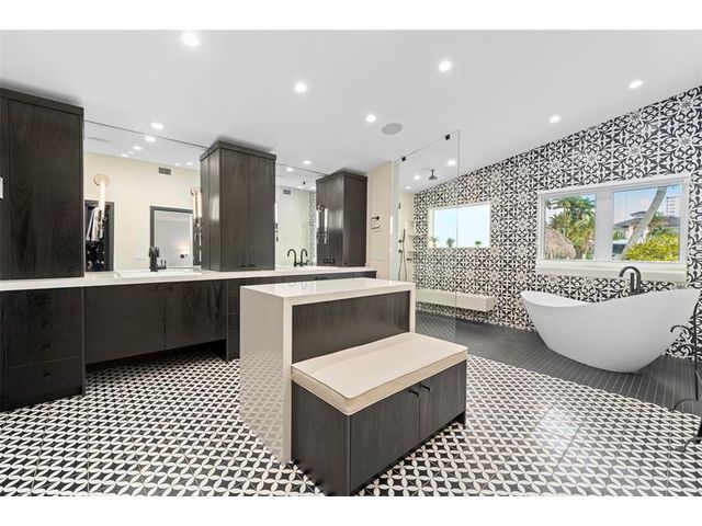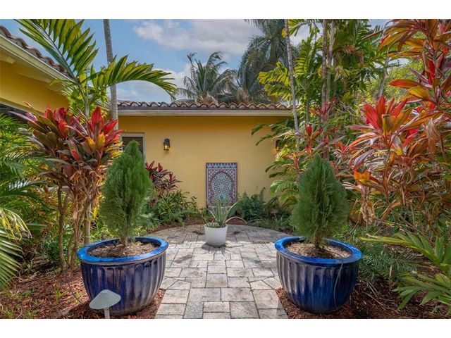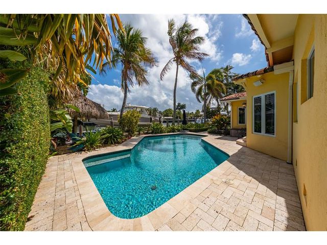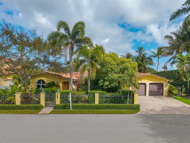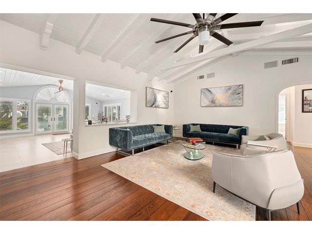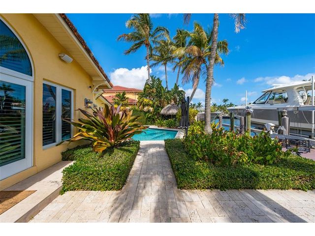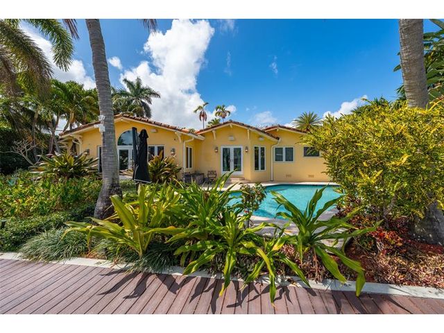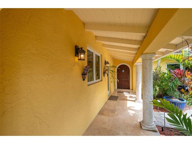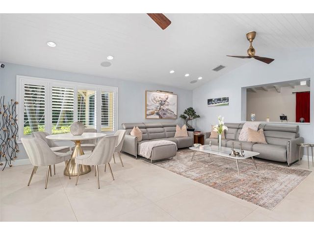 Welcome to this renovated Florida bungalow with 100 feet of waterfront on 200-foot-wide Oriente Lagoon, offering direct Intracoastal access, no fixed bridges. This single-story smart home features a split floor plan with 4 beds, 4 baths, 2 half baths. Enjoy a formal living room with vaulted beamed ceilings and fireplace, formal dining, and family room opening to the pool and patio. The gourmet kitchen boasts a Brazilian quartz island, premium appliances, and hardwood floors throughout. The primary suite offers a spa-like bath. Upgrades include impact windows and doors, newer barrel tile roof, smart home system, laundry room, and garage. Outdoor living shines with a gated courtyard, new dock and 32K lb boatlift, raised seawall, turf, mosquito mist system, summer kitchen, and cabana bath.