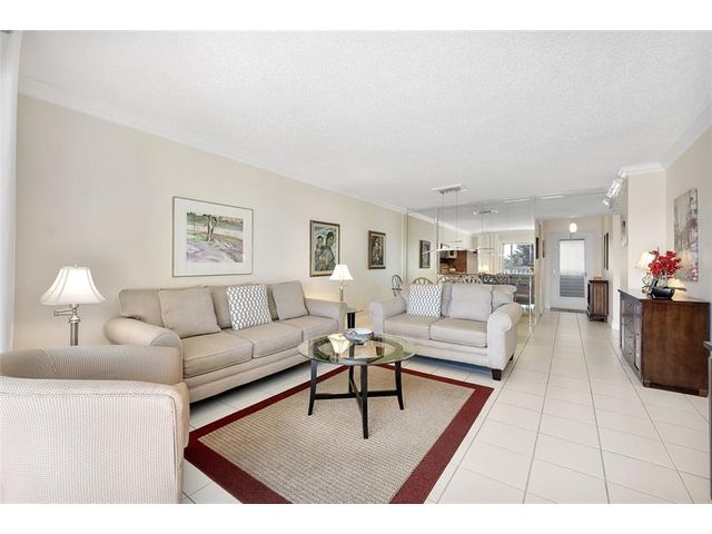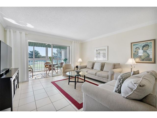 Spacious and beautifully maintained 2-bedroom, 2-bath corner unit on the top floor, offered furnished with golf view. Featuring tile flooring throughout, elegant crown molding and the kitchen and bathrooms have been enhanced by removing the drop ceilings for a more modern look. The A/C was replaced in 2018 and the water heater in 2020. Located in a well-maintained 55+ community offering great amenities, including a pool, clubhouse, shuffleboard, and more. Monthly fees conveniently include internet, cable, and reserves.