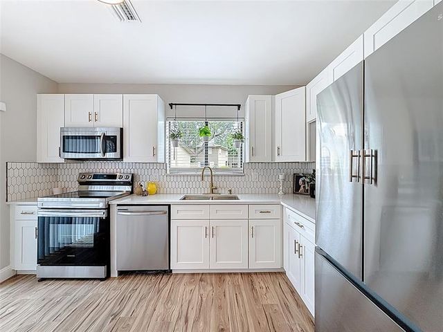 Seller offering 5k toward closing costs if closed by April 10th. Excellent location, beautiful villa. Community pool, tennis, clubhouse, great fishing too! Just a 4 minute walk to Tradewinds Park. Spacious living area with generous sized bedrooms, fenced patio in back. New cabinetry, newer appliances with warranty. A/C unit less than 5 years old, washer/dryer in unit. New bathroom showers and vanities. Wonderful community with gated entrance. Fee simple, so perfect buyers with a small down payment of 3-5% . HOA dues include water, exterior home owner insurance, cable TV and high speed internet. Conveniently located to both I-95 and Florida's Turnpike..............Come see today! Purchase furnished or not..all furnishings available.