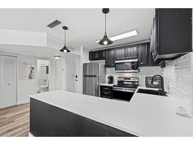 Welcome to Barcelona Gardens in the heart of Pompano Beach! This fully renovated 1BR/1BA second-floor condo is move-in ready and just minutes from the beach, shopping, dining, and major highways. Features include vinyl plank flooring throughout, new A/C, updated kitchen with stainless steel appliances and modern backsplash, renovated bathroom, new light fixtures, and a spacious bedroom with a large walk-in closet. Enjoy a private screened-in balcony with peaceful views. Community offers a 2021 roof, pool and clubhouse, assigned parking, free laundry nearby, and low HOA fees including water. All-ages and pet-friendly—perfect for year-round living or investment.