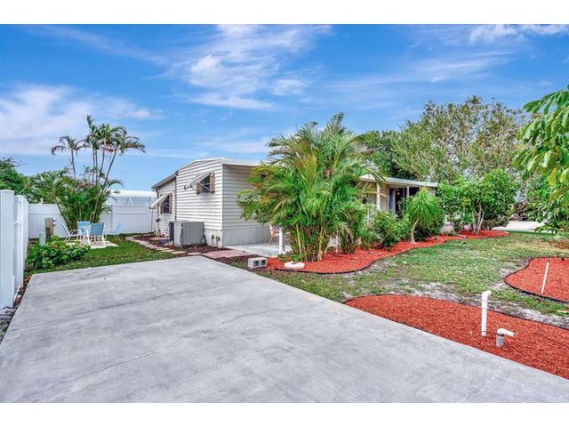 No HOA, Own Land, Corner Lot , not 55+, This is a fabulous Hobe Sound community with Clubhouse heated pool, shuffleboard, library and billiards, and more available for a yearly fee. Mature landscaping adorns this corner lot home for additional privacy with two driveways and plenty of storage for a boat or rv with no restrictions. Home has a welcoming screened entry perfect for an indoor / out retreat. 2 Bedrooms and 2 updated Bathrooms . Eat in kitchen, livingroom, and large bonus room to fill many different needs. Multiple outdoor areas for relaxing and enjoying the Florida sunshine or shade. Don't miss this great opportunity to live in Hobe Sound. Very short distance to Publix. Few miles to the Beach, and downtown Hobe Sound. Fabulous Florida lifestyle!