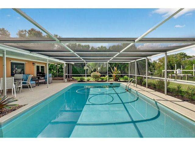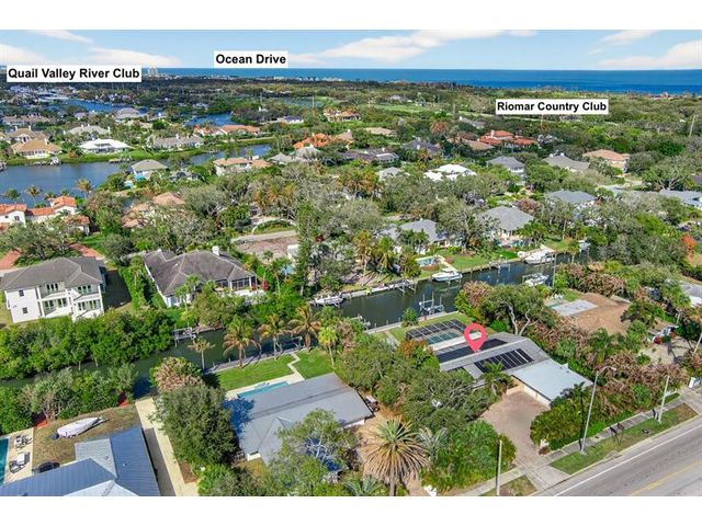 The lowest-priced river-access home in Vero Beach with 3+ bedrooms, this 5-bed, 3-bath canal-front residence offers amazing value with over $320k in recent upgrades. Highlights include a new dock with 2 boat lifts, impact windows, doors and garage doors, solar electric and solar pool heat, new AC and hot water heater (2024), 32x15 lap pool and a renovated kitchen with new appliances. The layout includes an in-law suite with its own entrance, a fully fenced yard, custom privacy wall, and tropical landscaping with a mature mango tree. Mins to the beach, Ocean Drive, Miracle Mile, and shopping.