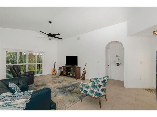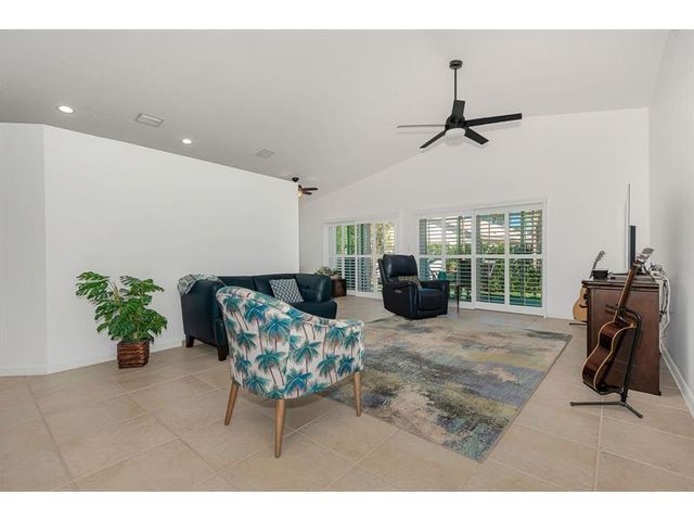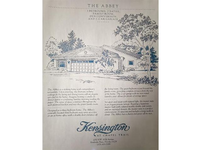 Beautifully maintained 3-bedroom, 2-bathroom + family room home with a 2-car garage, offered by the original owners. Located in the highly sought-after Kensington neighborhood of Chapel Trail. This freshly painted residence features impact windows and doors, elegant plantation shutters, neutral tile flooring throughout living area and vinyl floors on two of the bedrooms. A screened patio-perfect for relaxing or entertaining. Surrounded by "A"-rated school district. The home offers exceptional convenience with close proximity to I-75, top hospitals, popular restaurants, and shopping destinations. A wonderful opportunity to own a well-cared-for home in a highly desirable area. (Roof 2012), (A/C 2021), (Water Heater 2015), (Electrical Panel 2025) (Painted outside 2023)