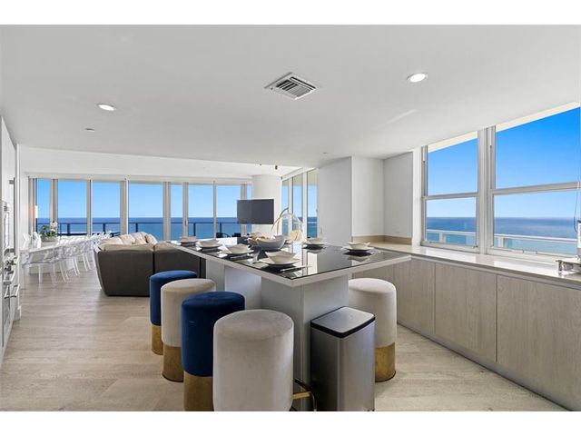 Elevate your lifestyle with luxury and versatility in this Rare oceanfront corner DOUBLE residence (Units 3501 & 3502), one of only five of its kind in the building. This expansive 4-bedroom, 4.5-bath condominium offers stunning panoramic ocean and city views from a generous wraparound balcony. A private elevator foyer opens to a spacious open-concept layout with floor-to-ceiling impact glass and en-suite bathrooms in every bedroom, the property allows short-term rentals with NO RENTAL RESTRICTIONS and no HOA approval required, while also accommodating full-time residence. Resort-style amenities include beach and pool service, spa, fitness center, beauty salon, valet, and on-site dining.