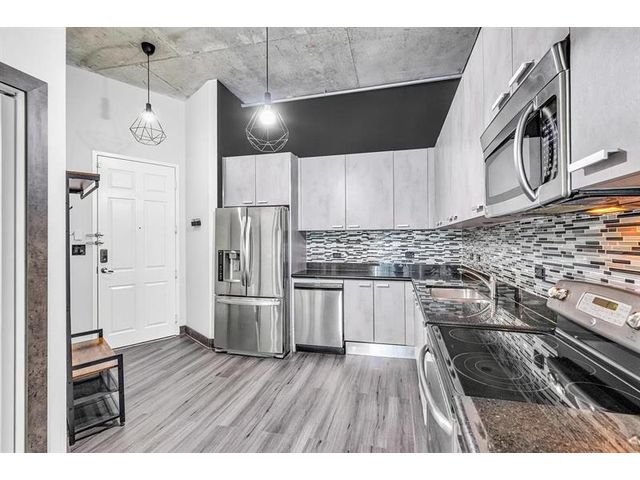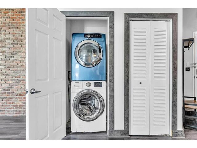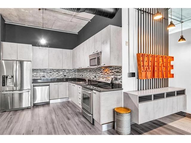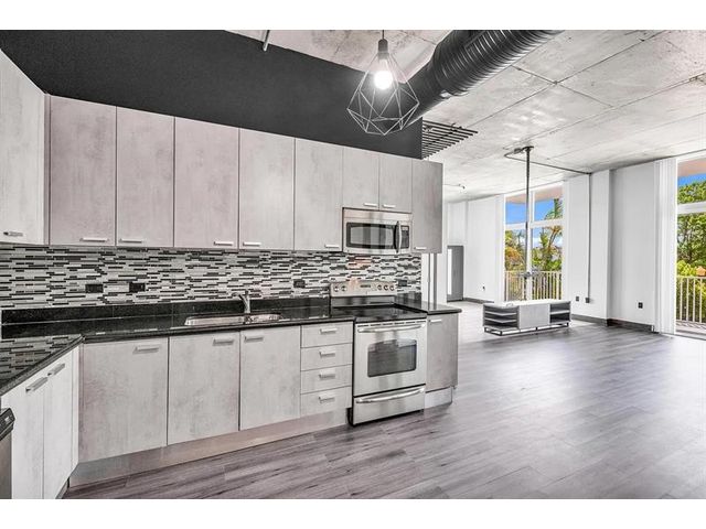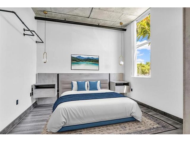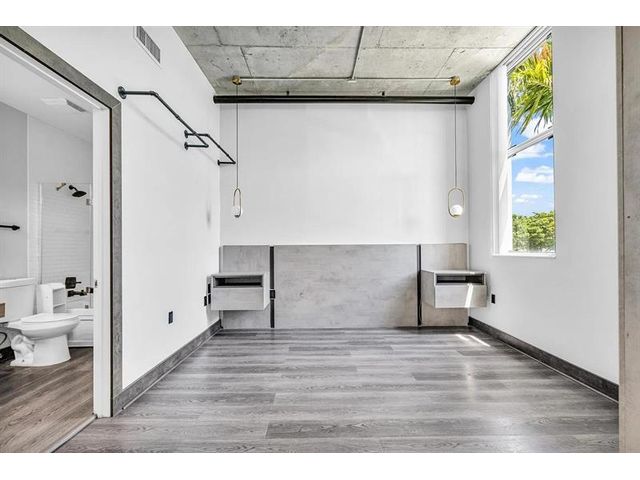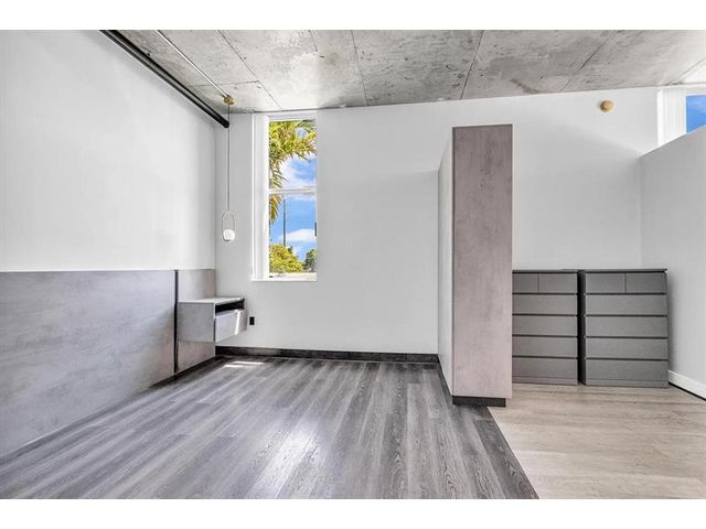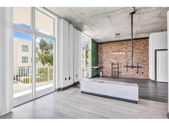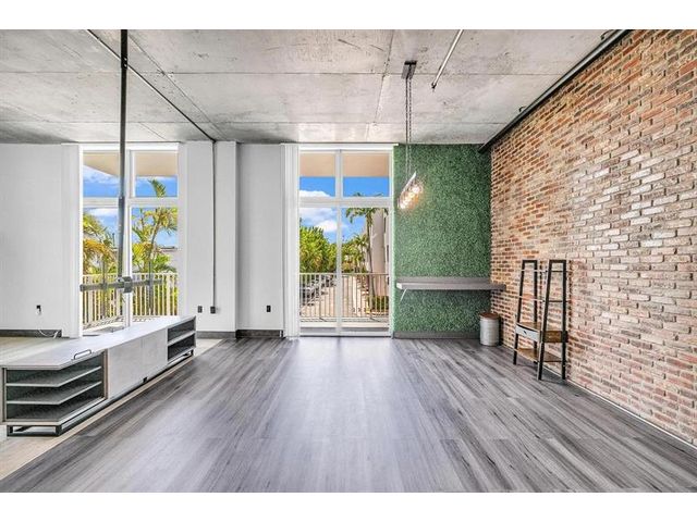 Unique New York Loft style in Florida! One-of-a -kind. This beautiful open concept loft blends industrial-inspired design with urban convenience. Fully customized, including a new floor, exquisite bathroom with dual sink, a wood wine bar, real brick walls, updated lighting fixtures, concrete ceiling with exposed pipes connections, and special custom-made furniture INCLUDED. Extensive private balcony, Building amenities: Pool, private assigned parking, storage, etc. PETS allowed! Located in the heart of Hollywood, just walking distance to restaurants, shops, parks, and only a bike ride away from Hollywood Beach and boardwalk. Live the New York lifestyle for a quarter of the price! (Short-term rental appv, 3 months minimum). 1 YEAR PAID HOA + PAID current assessment.