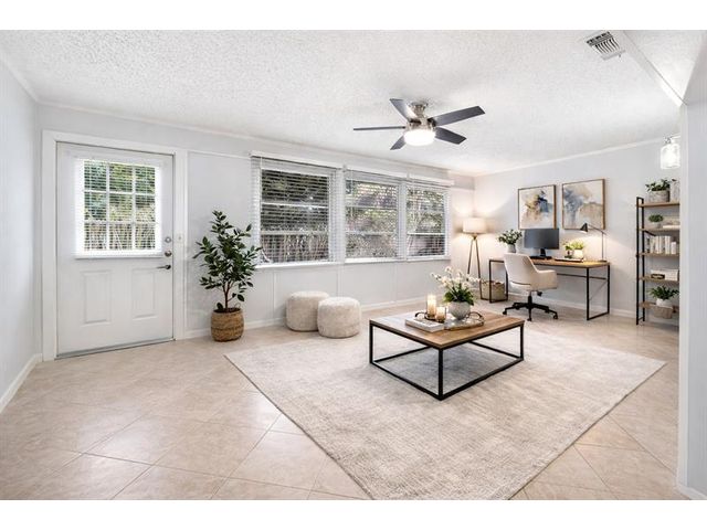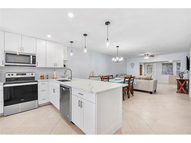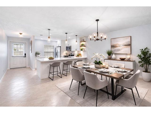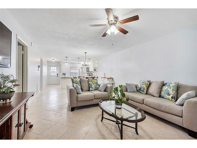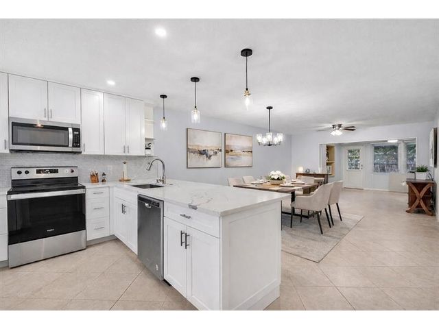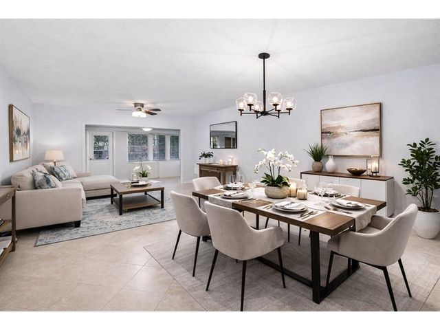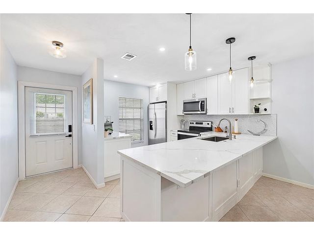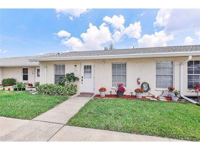Welcome to your dream home! Fully remodeled 2/2 villa, in the desired 55+ community of Covered Bridge. Upgrades include large Kitchen island with quartz countertops, new stainless steel appliances, soft closing cabinets, recess lighting and new light fixtures. New front and back doors, fully repainted and new electrical panel. Remodeled bathrooms with new vanities, quartz countertops, accent backsplash, luxury vinyl floors. Washer and dryer in the unit. AC 2012 and Water Heater 2010. Additional 168 sq. ft with enclosed patio. Enjoy a tranquil back yard with shady trees. The Clubhouse includes two heated pools, social space for events, bocce ball, shuffleboard, tennis, pickleball courts, and a serene pond with a fountain. Cable and water included in the HOA. Furniture negotiable.