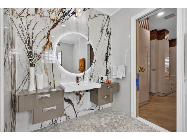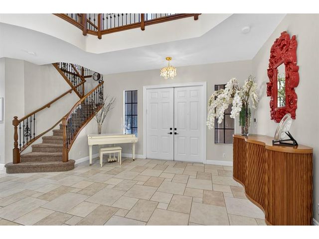 Stunning Wellington estate in prestigious Versailles featuring 6 bedrooms, 5.5 baths & over 4,200 SF of luxurious living space. This gorgeous estate offers a rare additional primary suite on the first floor, ideal for multi-gen living or guests. Dramatic two-story entry with statement chandelier, designer finishes, spacious loft/flex space, w/open-concept layout for entertaining. Gourmet kitchen w/rich wood cabinetry, granite counters, & stainless appliances. Expansive primary retreat with spa-style bath. Private oasis pool w/ a resort-style backyard escape. Versailles offers a grand clubhouse, resort pool, fitness center, tennis courts, playground, scenic walking paths & 24-hour manned gate security. All meas. approx.; info deemed reliable but not guaranteed; Buyer/Buyer’s Agent to verify