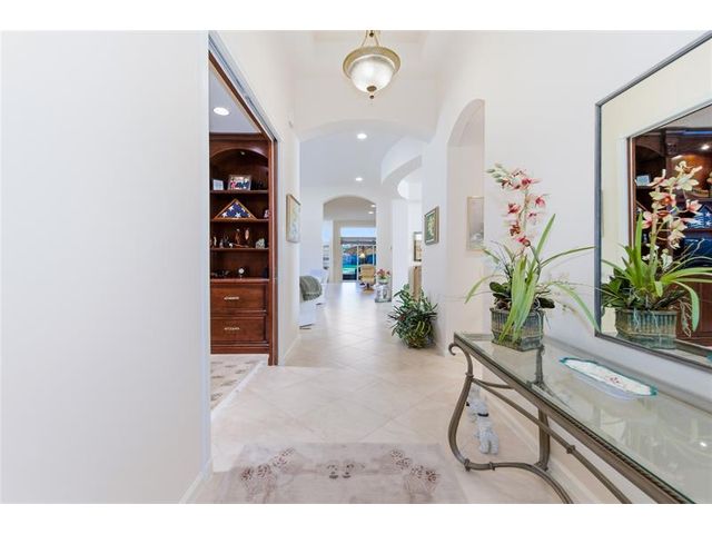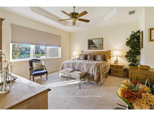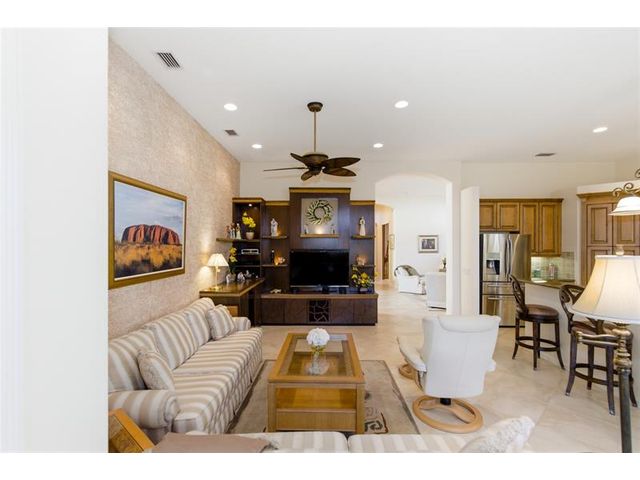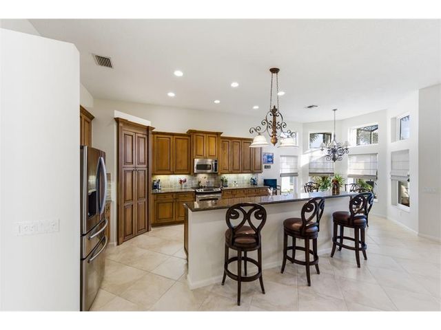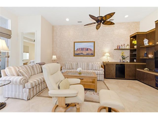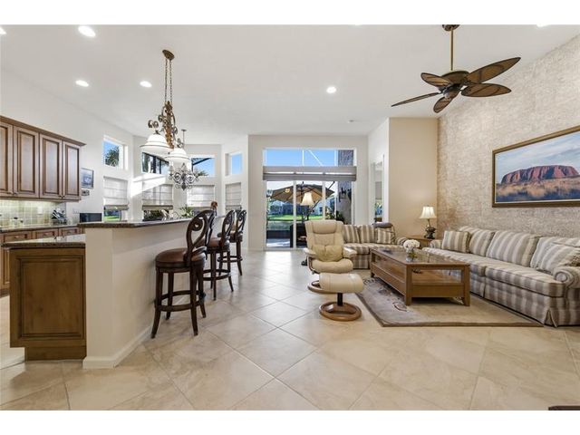 Welcome to 2321 sq ft of luxurious living in this 2 bedroom, 2.5 bath plus office/den. Freshly painted and enhanced with NEWLY INSTALLED IMPACT WINDOWS AND DOORS, this beautiful home offers both elegance and peace of mind. The spacious kitchen is a chef's delight, featuring solid wood cabinetry, convenient pull-out drawers, a walk-in pantry, and stunning granite countertops. The adjoining family room and breakfast area create the perfect setting for casual gatherings or relaxed everyday living. Step outside to your private tropical lanai and enjoy tranquil water views. The expansive primary suite offers generous walk-in closets and a large en-suite bath. The formal living room and Dining room allow further space for friendly gatherings.