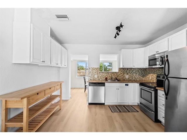 Light, bright & updated 3 bed/2 bath single family home in North Andrews Gardens! FEATURES/FINISHES: HURRICANE IMPACT windows, split bedroom floorplan, new wide plank LVP flooring throughout, open kitchen with stainless steel appliances & full glass tile backsplash, updated baths, large Florida room offers flexible living space – den/dining or home office! Roof 2012, AC 2023 with smart thermostat, Water Heater approx. 5 yrs old. Spacious fenced backyard for relaxing or entertaining. Large storage shed with side by side washer/dryer. PRIME LOCATION - easy access to I95, shops, grocery, restaurants, downtown Oakland Park, 3 miles to the beach! FEMA Zone X - no flood insurance required by lender.
