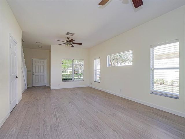 Lakefront corner unit, two bedroom and one-half bath townhome, featuring all new white kitchen cabinets, granite countertop, appliances and laminate flooring which offers natural light as well as spectacular views from the patio. Newer roof, air-conditioner and hot water heater Move in and enjoy this quaint community with a small clubhouse and heated pool. Centrally located to all that Vero Beach has to offer.