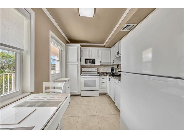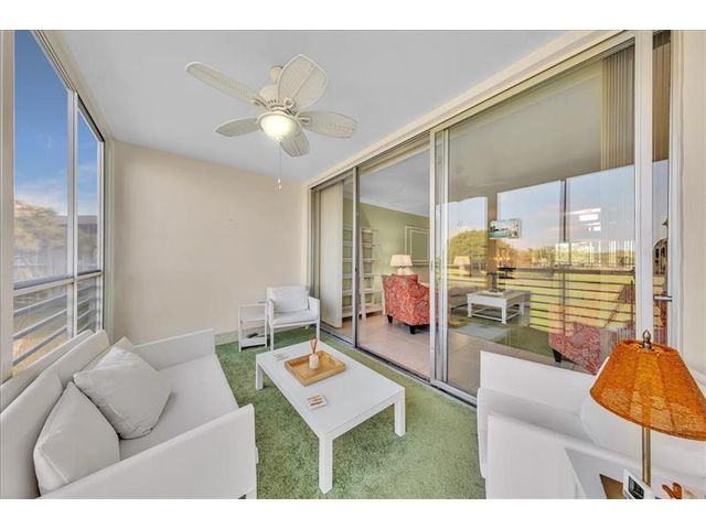Enjoy serene northerly golf course views from your private oasis, where comfort and style blend seamlessly. This MOVE-IN READY condo has recent improvements incl. updated electric panel, IMPACT windows & kitchen door (2024), new A/C (2023), & permitted renovations to the kitchen, bathrms, & tile and laminate flooring. Furniture is included. The building has successfully completed its 40-year structural & electrical recertification. Upcoming concrete restoration & a new roof have already been paid in full by the seller. INTERNET, cable, water, trash, sewer inc. in 1/4ly assn fee. Residents enjoy a secure lobby, 2 updated elevators, laundry rooms on each floor, a storage unit, & access to three inviting pools with grilling areas. Move right in knowing everything has been done and paid for.