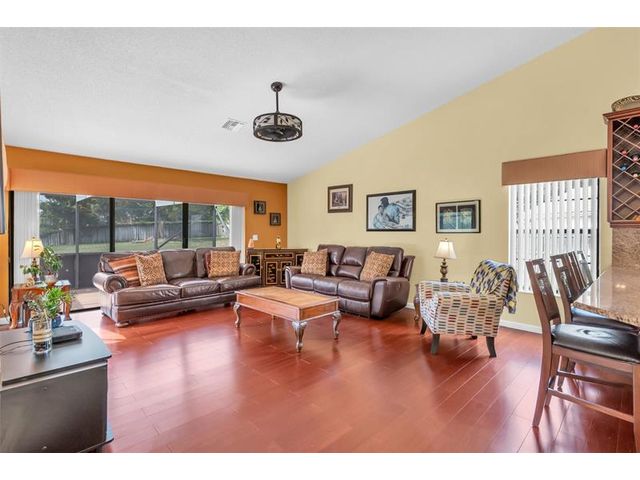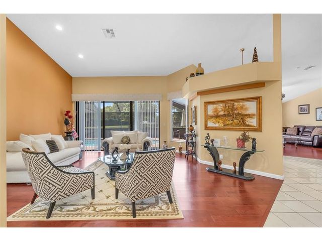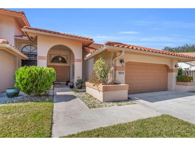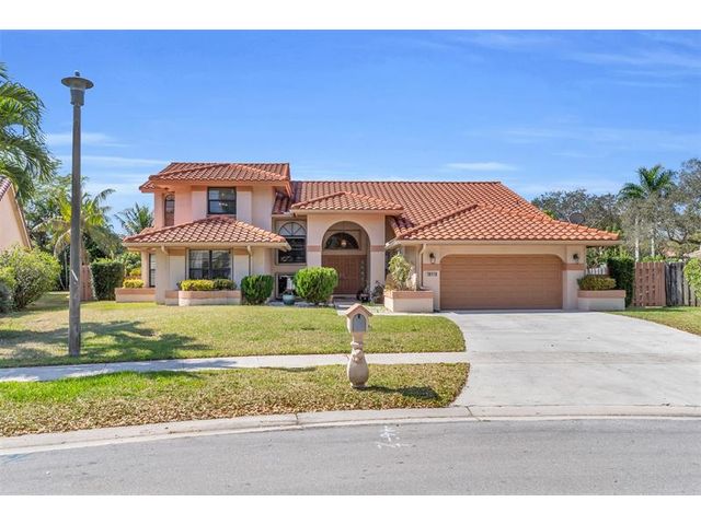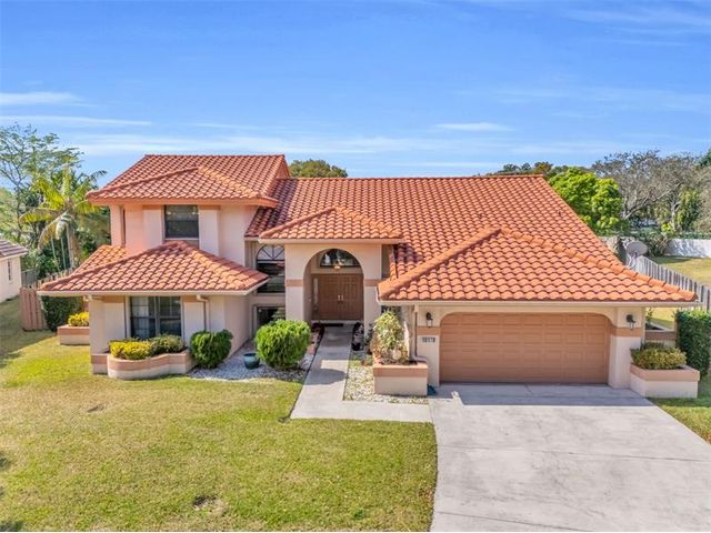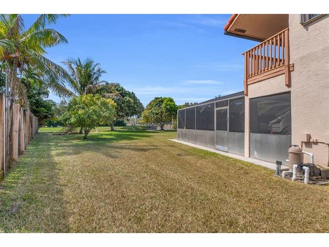 Live the Jacaranda Lakes lifestyle in this spacious 4BR/2.5 bath pool home on a huge 0.47-acre canal lot. Tropical backyard oasis with fruit and coconut trees, huge screened pool and multiple patio access points. Inside, 2,829 sqft of light-filled living has a formal living/dining room, staggered wood floors, tile walkways and a granite island kitchen with solid wood cabinetry, pantry and wine rack. Downstairs offers 3 bedrooms and a upgraded pool bath with dual sinks and exterior door. Private upstairs owner’s suite boasts a massive walk-in closet, spa bath with jacuzzi tub and walk-in shower, and a balcony overlooking the water. Jacaranda residents have their own park, nearby Central Park, Central Park Elementary and and walking distance to Publix, shopping, and plenty of Dining options.