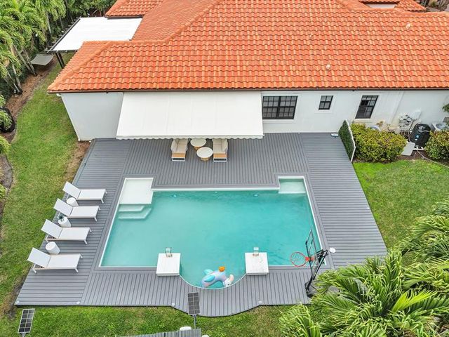 Welcome to the exquisite resort style modern estate home offered fully furnished at ESTADA AT MONTERRA. Ideally designed for entertaining family & friends! situated on a ONE OF KIND oversized corner lot totaling 15,104 sq, This tropical oasis features 37 palm trees throughout the backyard, saltwater Pool, travertine decking, cabana, playground, outdoor dinning and patio area accompanied by a beautiful shaded pergola, all light up at the evening time. Inside you will enjoy the open concept floor plan with generous use of designer elements, 6.5 bedrooms 3 bathrooms. Stunning kitchen with an oversized island, new appliances. The Master Suite includes modern flooring, walk in closets. separate guest suite, 3 car garage 2 has been converted, impact windows and doors, zoned for A+ schools.