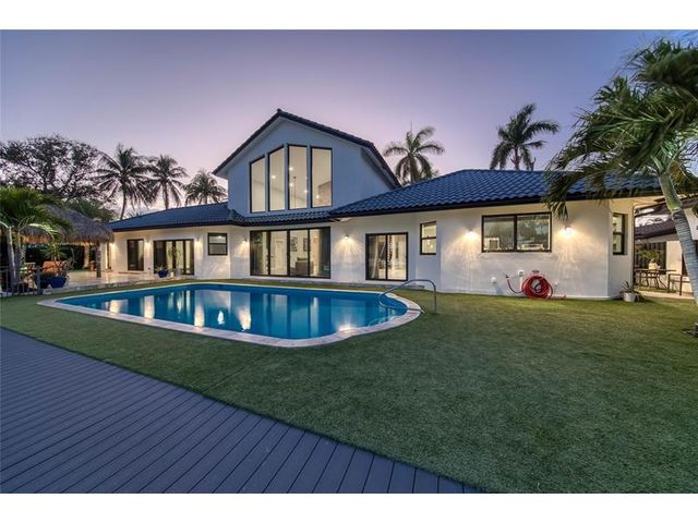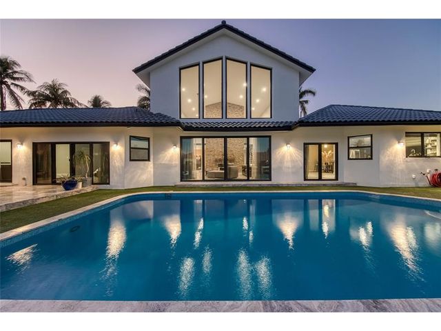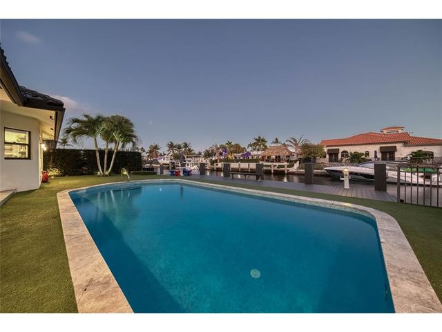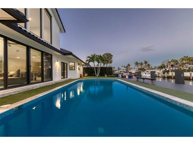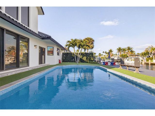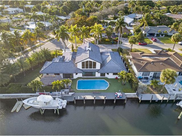 Experience waterfront luxury at its finest in this completely remodeled 3BR/3.5BA home with a 2-car garage, soaring 20-foot vaulted ceilings, and an expansive loft. Situated on a large 11,856 sq ft corner lot in desirable Lighthouse Point, this residence offers 150 feet of dockage with a brand-new boat lift and just 10 minutes to the inlet—ideal for boaters and anglers alike. The private pool creates a true South Florida retreat, perfect for relaxing or entertaining. Inside, the meticulously redesigned interior showcases high-end finishes, open living spaces, and sophisticated coastal style. Hurricane impact windows and doors provide security and peace of mind. A rare opportunity to own a move-in ready waterfront home with space, style, and premier boating access.