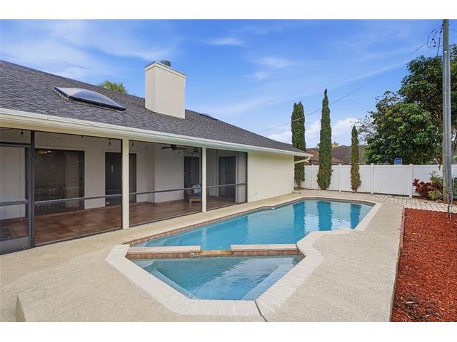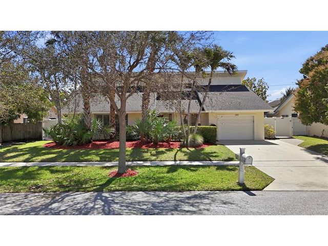 Don’t miss this exceptional 3BR/2.5BA Pool home in highly sought-after Hidden Valley! Bursting with character, it features arched doorways, cedarwood vaulted ceilings, skylights, and a striking stone wood-burning fireplace. The spacious kitchen offers stainless steel appliances and an oversized pantry. You will appreciate the super spacious spa-inspired primary suite with marble shower with hurricane rated skylights allowing natural light to flow! Plantation shutters, crown molding. Enjoy youre private tropical retreat with lush landscaping, oversized screened patio with hurricane shutter, heated pool, Jacuzzi hot tub, and outdoor shower! No HOA! Zoned for A+ schools. Walk to tennis courts and Hidden Lake Park. Just 1.25 miles to the beach, we cannot wait to show you this great home!