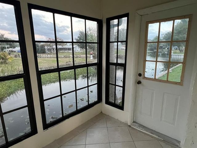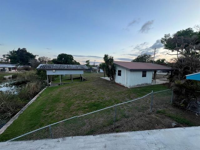 WATERFRONT LIVING WITH DIRECT LAKE OKEECHOBEE ACCESS. This home provides the ultimate Florida lifestyle in Okeechobee, Florida. Two bedrooms, two bathrooms with a large living room which centers around a fireplace, kitchen with dining. This home is perfectly positioned on a desirable corner canal lot, offering water frontage on two sides. This home is a dream for boating and fishing enthusiasts. This home is for those who love the outdoors. There is a 34 ft. by 40 ft. pole barn with a work shop. Plenty of room for your RV parking or boat. The garage is 15 ft. by 30 ft. One enclosed boat garage/slip with stairs leading to the concrete roof deck. There is an additional covered boat slip, giving you two boat slips.