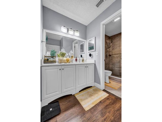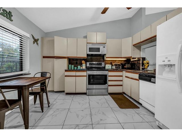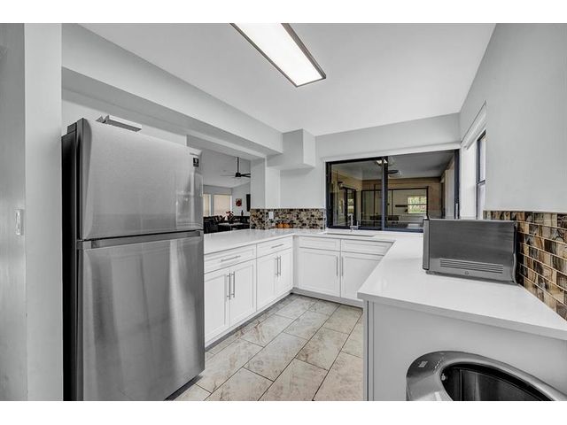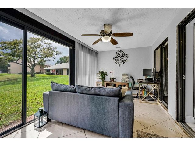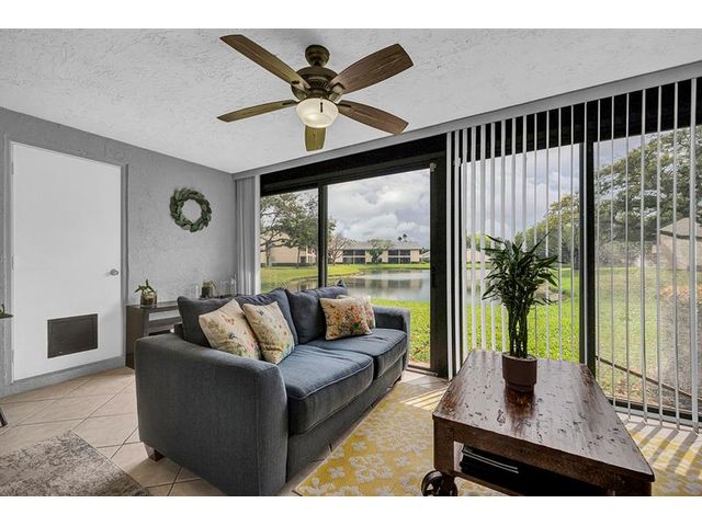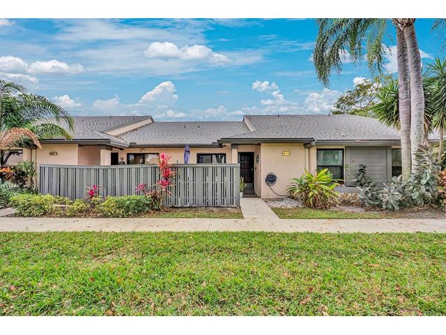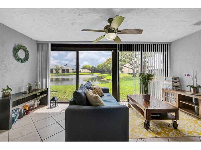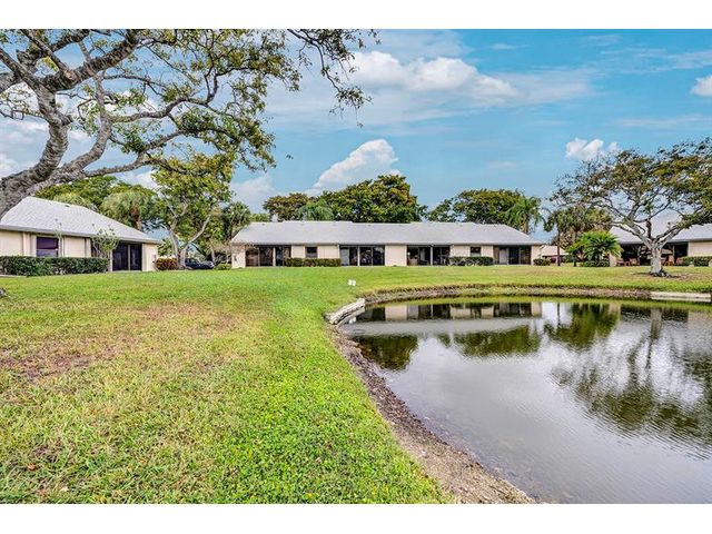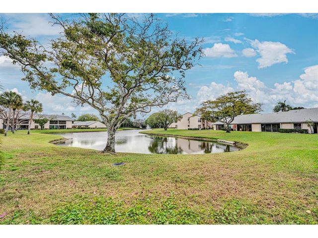 Beautifully upgraded villa with peaceful water views! This spacious home features tile and wood flooring throughout, vaulted ceilings, fresh interior paint, and fully renovated primary and guest bathrooms. The oversized kitchen offers abundant cabinetry and granite countertops. Ideally located directly across from the community pool, tennis courts, and clubhouse with a recently updated fitness center. Enjoy a prime Boca Raton location close to restaurants, shopping, and fine dining. Just a short walk to Boca Municipal Golf Course, approximately 2 miles to Town Center Mall, 4 miles to FAU, and minutes to Mizner Park and the beach. Quiet, well-maintained, pet-friendly all-ages community and no mandatory membership. HOA includes water, basic cable, and internet. Hurricane shutters included.
