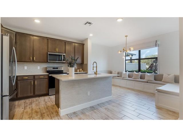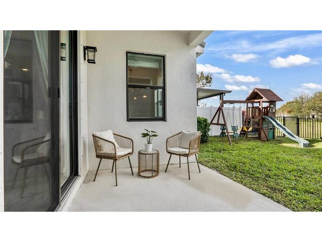 Spacious two-story home with a two-car garage located in a desirable gated community. This well-appointed residence features an open-concept layout filled with natural light. The modern kitchen offers stainless steel appliances, quartz countertops, and a spacious island with an integrated sink, seamlessly connecting to the main living areas. A cozy breakfast area includes a custom built-in bench. Upstairs, the primary suite boasts a walk-in closet and a private balcony overlooking the waterway. Enjoy outdoor living in the private backyard featuring a children’s playground with serene water views. Conveniently located with easy highway access near the Turnpike and Atlantic Blvd, and just minutes from the beach. Water, sewer, trash, cable, and internet are included in the association fee.