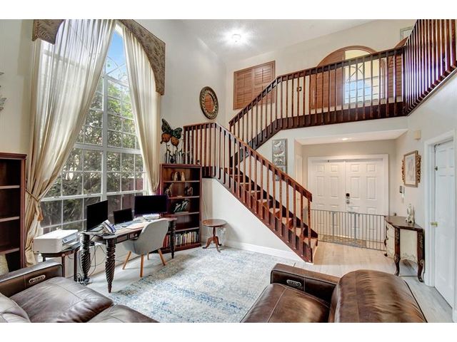 Desirable Embassy Lakes Heated Pool Home!!! Welcome to this beautifully maintained 4 bed/3 bath pool home with a 2 car garage in the desirable, guard-gated Embassy Lakes with low HOA. Functional layout with spacious primary suite on the first floor. Open and airy with volume ceilings, vinyl flooring on 1st floor and Brazilian wood upstairs. Step outside to a private screened patio and heated pool with low-maintenance yard. All "big ticket" items on home done!!! Roof 2017, WH 2023, ACs 2024 & 2014, generator hookup added to electrical panel , full hurricane protection throughout. Enjoy community pools, tennis, clubhouse, scenic walking paths and multiple houses of worship.
