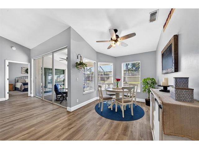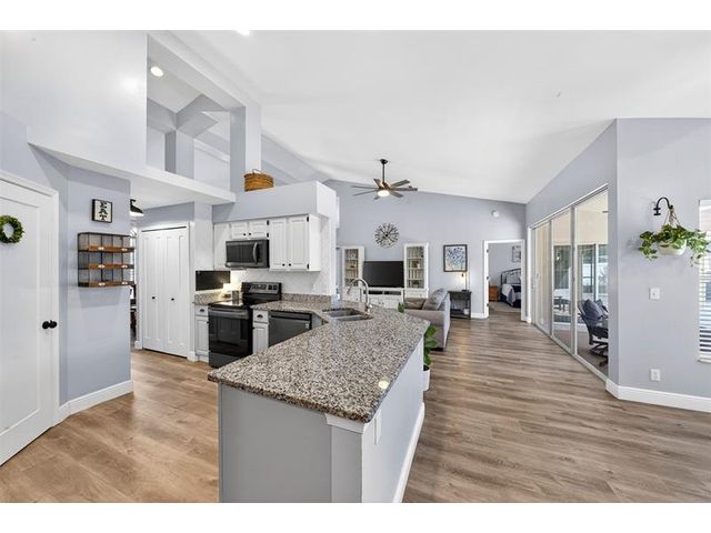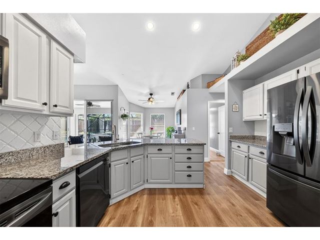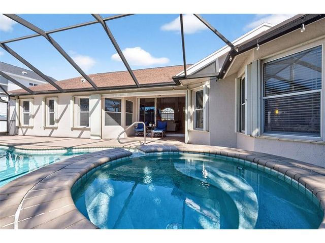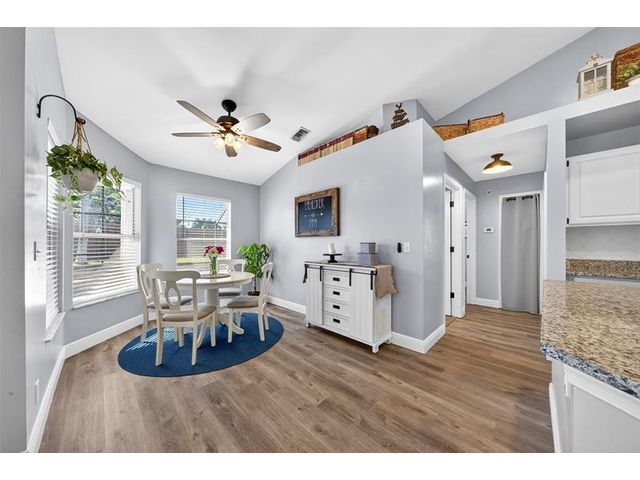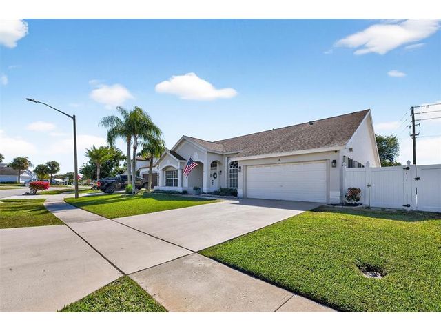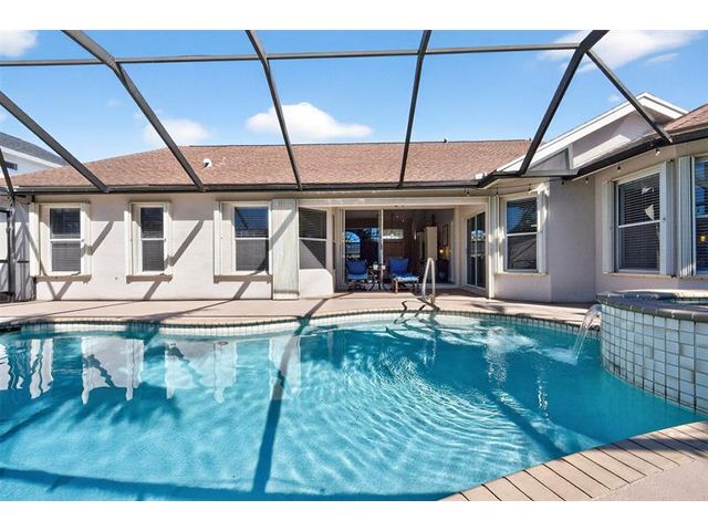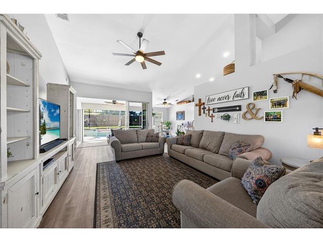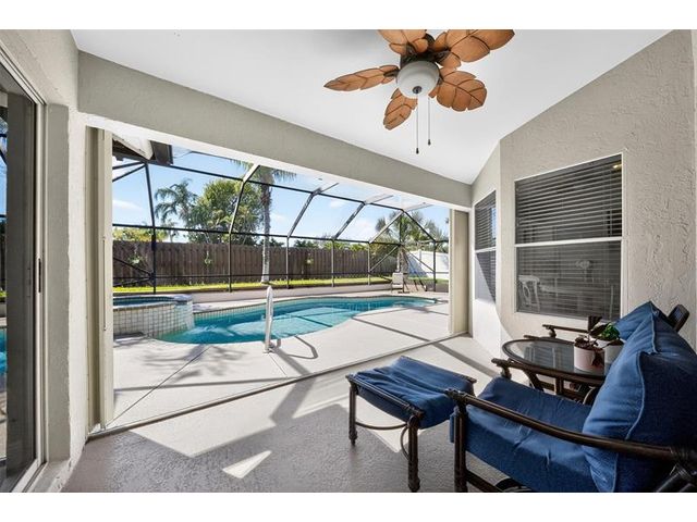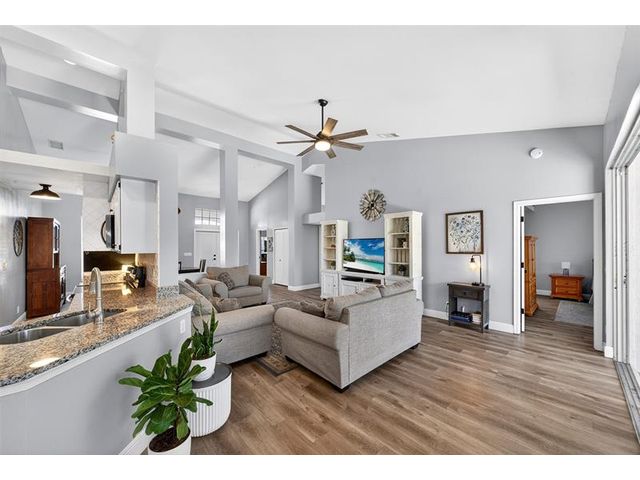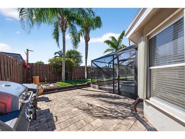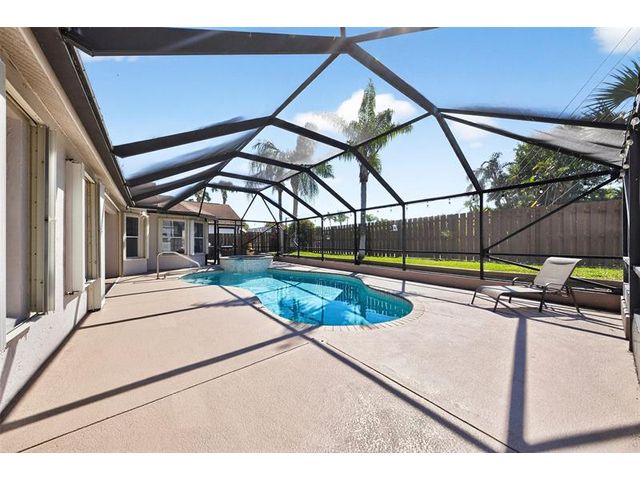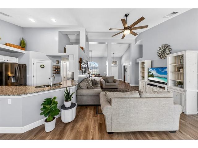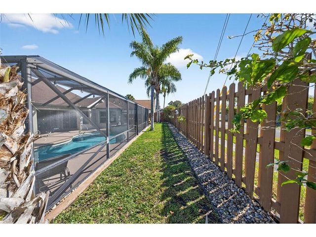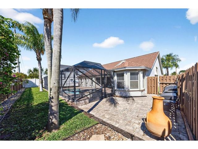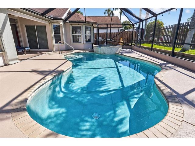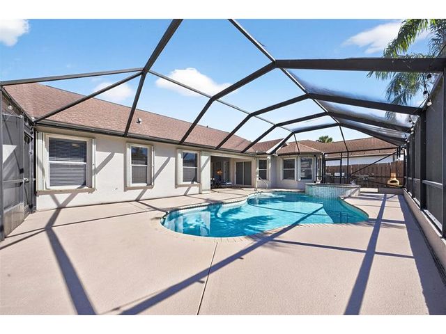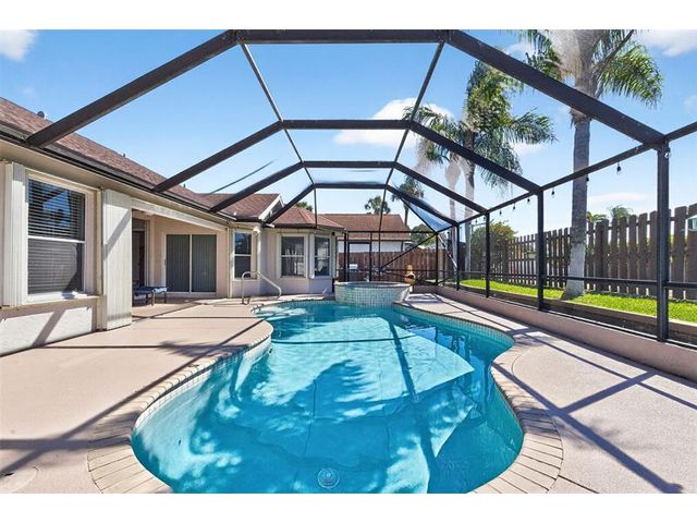 Move-in ready and beautifully maintained, this 4 bedroom + den/office home features soaring ceilings, open living spaces, endless updates, and a private pool perfect for Florida living! Outstanding upgrades include a new hurricane impact front door & garage door; all new interior doors; new luxury vinyl flooring throughout and baseboards; an open kitchen with white cabinetry, granite countertops, and new stainless steel appliances (refrigerator, stove, dishwasher, microwave); new washer and dryer; updated lighting and ceiling fans; new hot water heater; and fully painted interior and exterior! Enjoy the ultimate outdoor retreat with a screened pool, spacious patio, and a fully fenced yard designed for comfort and privacy. Low HOA fees and conveniently located near shopping, dining & more!