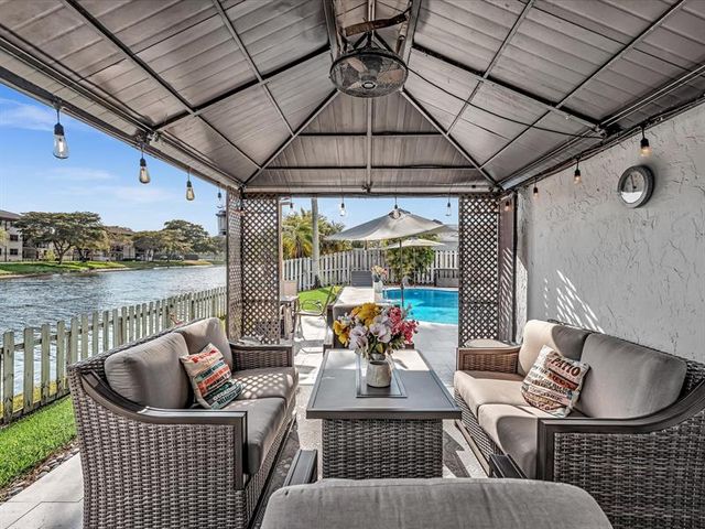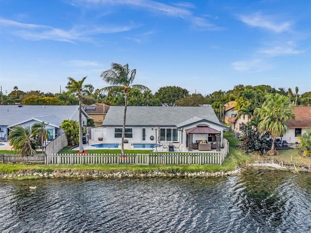 Lakefront 4BR/2BA home in the Hills of Welleby offering 1,985 SF under air and exceptional upgrades throughout. Enjoy a fully tiled backyard oasis with gazebo, new fence, and renovated in-ground saltwater pool featuring waterfall, LED lighting, and smart phone controls. Full impact windows and doors, impact garage door, generator hookup, lake-fed irrigation, new roof with transferable warranty, and new A/C provide peace of mind. Interior offers all tile floors, updated master cabana bath with pool access, renovated second bath with Jacuzzi tub, newer appliances, and 7 ceiling fans. Move-in ready waterfront living! See full supplemental upgrade list for complete details.