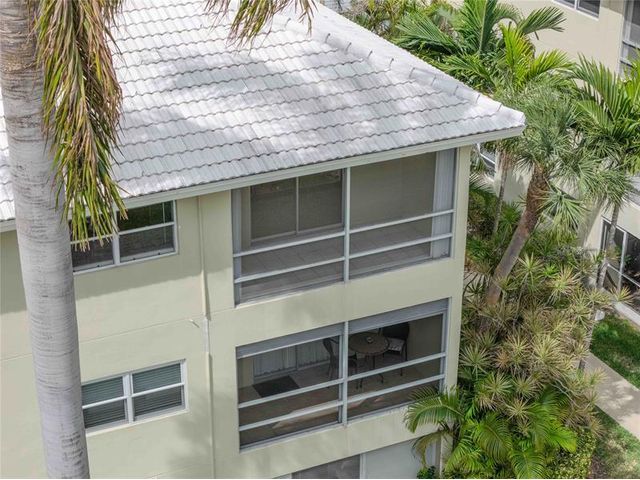 Located in desirable Lighthouse Point, this beautiful top-floor, corner unit offers exceptional location and convenience, assigned parking, great community amenities. Freshly painted, newer flooring, hurricane-impact windows, for added peace of mind and security. Both bedrooms offer walk-in closets, plus a spacious pantry for additional storage. Enjoy low maintenance living with cable included, and easy access to laundry facilities, mailboxes, and extra storage. Community amenities include a clubhouse, heated pool, bocce ball, shuffleboard, patio, bbq. Enjoy nearby shopping, dining, the post office, library, transportation, the LHP courtesy bus, minutes to the beaches. Perfect as a full-time residence or a seasonal retreat. 55+ Community. No leasing, No pets allowed.