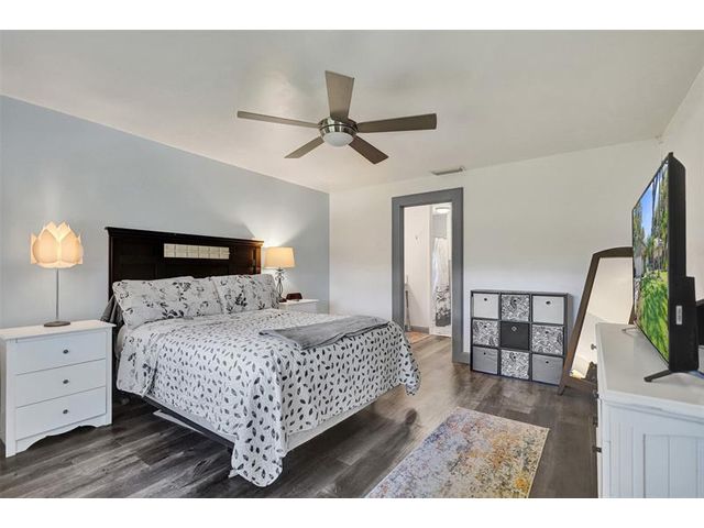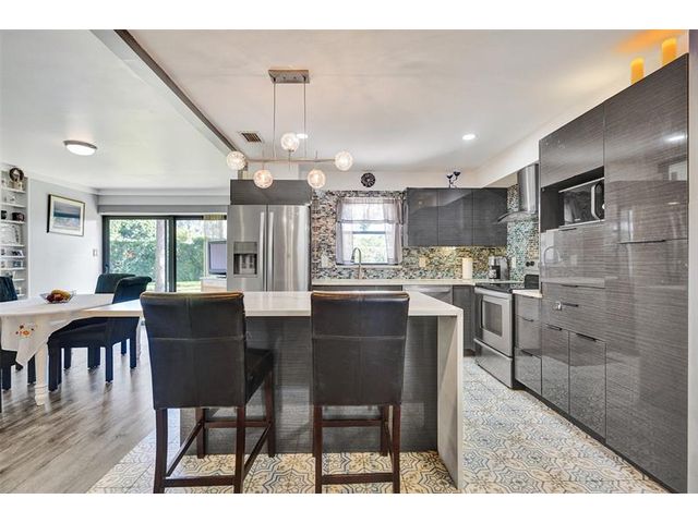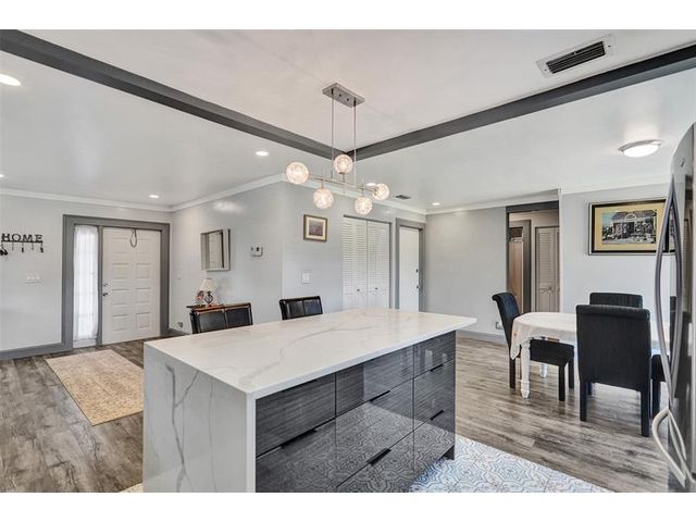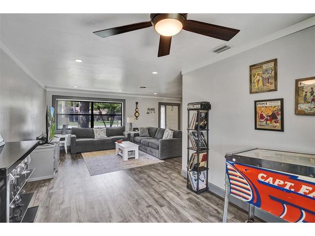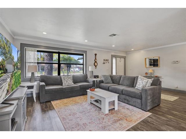 Live where amenities and affordability meet! This beautifully remodeled 2-bedroom, 2-bathroom residence offers the perfect blend of modern upgrades and comfortable living. Completely remodeled chef's kitchen features sleek quartz countertops, Water-fall island, modern gloss cabinets, mosaic glass backsplash, and newer SS appliances. The entire house has wood look flooring, high-hat lighting, designer ceiling fans, and elegant crown molding throughout. Both bathrooms have been completely renovated with contemporary showers and tile. The master bedroom features a walk-in closet w/custom California shelving. This home sits on a massive 15,400sf lot offering a serene and private setting perfect for play area and plenty of room for a pool. Rainberry Bay is a 55+ Active Adult community.