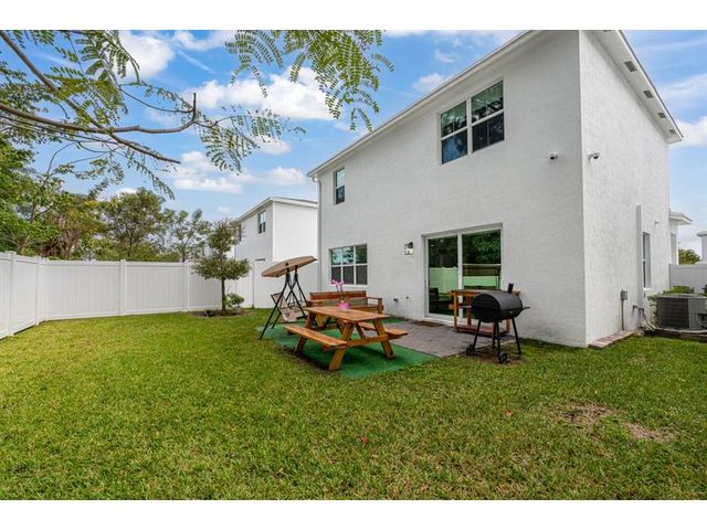 Welcome to Symphony Place, a gated, contemporary community in the heart of West Palm Beach. This newly built 4 bed, 2.5 bath home sits on one of the best and most private lots in the community and features high volume ceilings, luxury vinyl flooring throughout, quartz countertops, modern cabinetry, and impact windows and doors for both style and peace of mind. The epoxy coated garage floor adds a clean, polished finish, while the fully fenced, private backyard creates an ideal setting for outdoor living. Perfectly positioned between I-95 and the Turnpike, you’ll enjoy quick access to the beach, shopping, dining, and the mall via Southern Blvd. Square footage, distance, and size are approximate