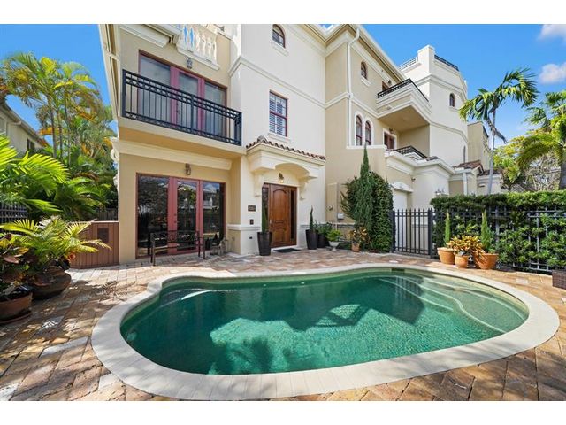 THIS IS IT! The PERFECT Victoria Park Location on a Quiet Tree Lined Interior Street! Huge Corner Townhouse with Two Car Garage, Large Pool and Outdoor Space. First Floor Living Areas with Vaulted Ceilings and Marble Floors, Large Living and Dining, Gas Cooking, Subzero Oversized Fridge, Large Island, Pantry, Powder Room and Interior Elevator Connecting to all Three Floors. Iron Staircase leads up Primary Suite with Terrace, Huge Walk-in Closet, Spa Like Bath, Guest Room with Ensuite Marble Bath and Terrace, and Laundry Conveniently Located on the Second Floor. The Third Floor Opens to a Large Flex Space for Family Room AND Office, Huge Terrace Overlooking the Skyline of Downtown Fort Lauderdale, And a Third Guest Suite, with Large Walkin Closet, Guest Bath and Private Terrace! Come See!