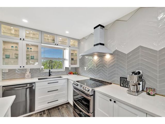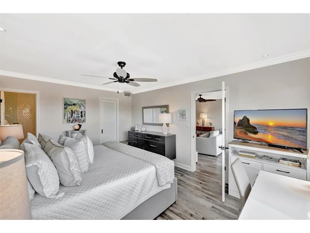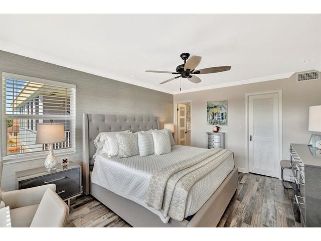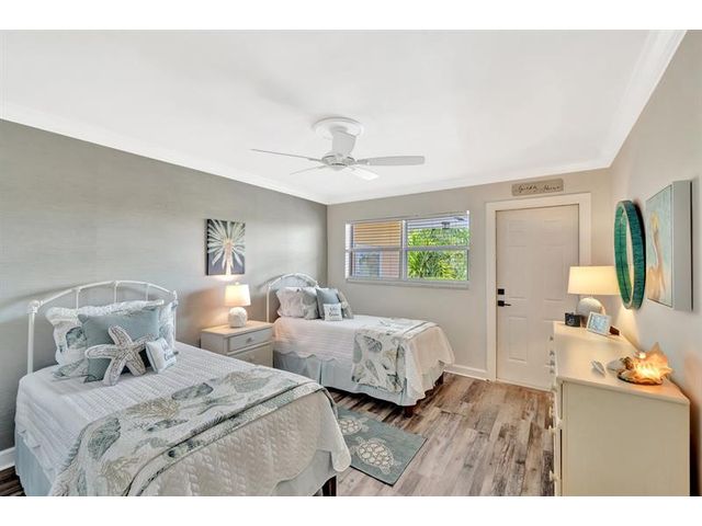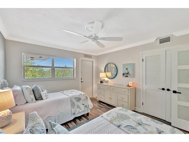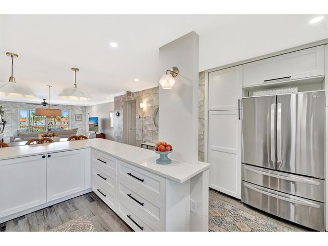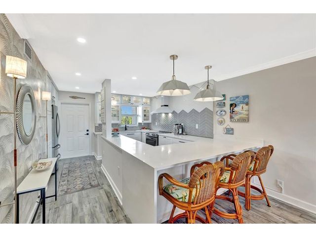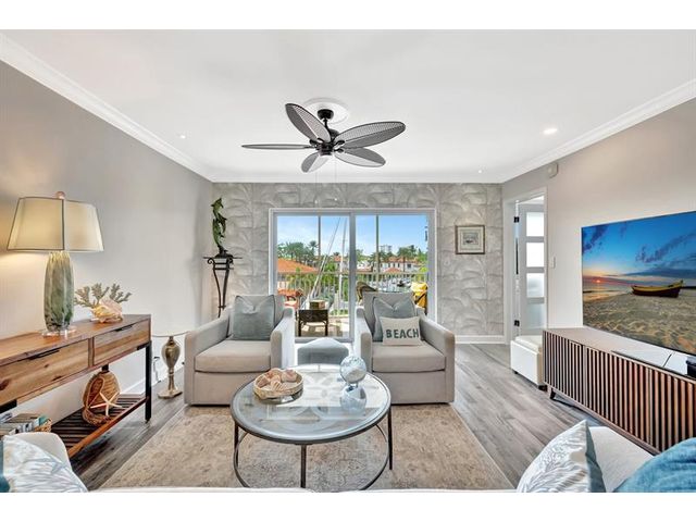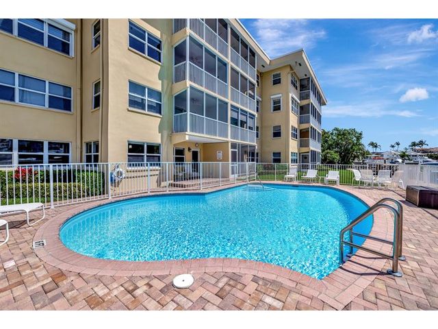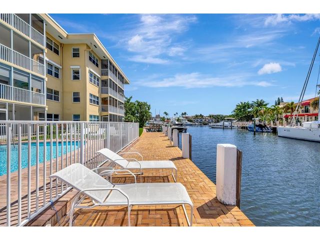 Turnkey Waterfront Condo | 1 mi to Ocean | Designer Renovation | Rare Canal Views | Elevator Building | Beautifully renovated 2/2 condo offers buyer's must-haves: open kitchen w/oversized breakfast bar, dedicated dining space, spacious living room and updated baths. Expansive screened lanai overlooks a resort-style pool, community dock and tranquil waterway. Custom designer finishes complemented by vinyl plank floors, frosted glass panel doors, crown molding, skim coated walls/ceilings, and custom closet. Hurricane impact windows, storage, and parking complete the package. Blocks to beach, pickleball, tennis, kayaking, boat launches, shopping, and restaurants. A 10+ location. Well managed; 40/50-year recertifications complete, SIRS compliant. Cats OK, rentals limited.