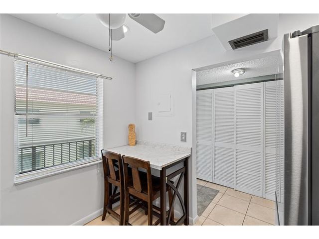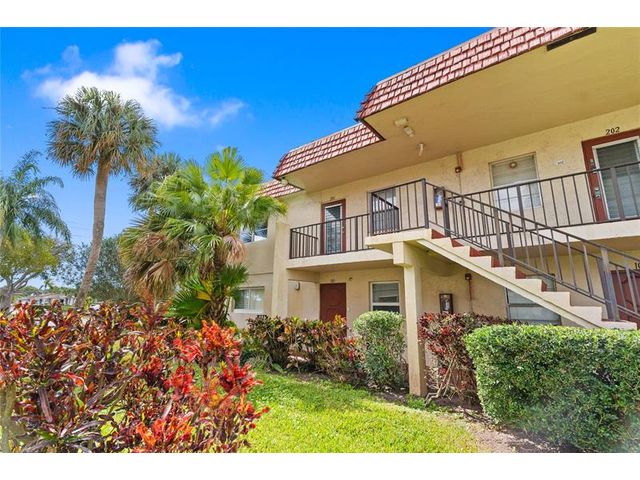 2 bedroom, 2 bathroom corner unit on the 2nd floor. Features laminate and tile flooring, an updated kitchen with new appliances, spacious layout with walk-in closet, ceiling fans, and an enclosed Florida room for extra living space. Primary bath with shower/tub combo, guest bath with walk-in shower . A/C 2022, water heater 2022, roof is 2024. Water, basic cable, and trash included in HOA dues. No Assessments. Laundry located on each floor of the building. Community amenities include pool, clubhouse, shuffleboard, and on-site management. Assigned parking. Great location near shopping and dining. All information on MLS for this listing is deemed accurate but not guaranteed & subject to errors & changes without notice.