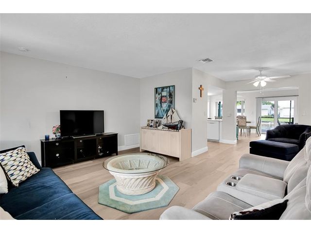 Come see this gorgeous home in Mainland 55+ community. This home has it all and is priced fairly against the community competition. You will see the home and property will blow away your clients. The curb appeal and lot are professionally landscaped. The home has beautifully been updated with newer kitchen appliances, quartz counters, bathroom, high impact windows, flooring throughout, Roof is only 7 years old. AC- 2013 but maintained and runs efficiently. Enjoy your favorite beverage and company on the enclosed 4 year old porch with canal views! Features a tankless hot water heater installed in 2022. Full size washer and dryer. Be the first to show! Will not last! No aggressive dog breeds, 2 pets allowed per household. No parking on grass. The community is a 55+ community.
