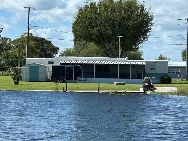 ~BUCKHEAD RIDGE~ Charming 2 bedroom/ 2 full bath Singlewide mobile home with access to Lake Okeechobee. 1,220 sq. ft with many upgrades. New LPV flooring throughout, newer A/C, upgraded pluming, new under pinning, private Boat ramp, small private dock and a good sturdy sea wall. Large Florida room, fire pit and storage shed. Already paid 4-year termite treatment. This home has been cared for with love. Call today for your showing today. Measurements are approximate.