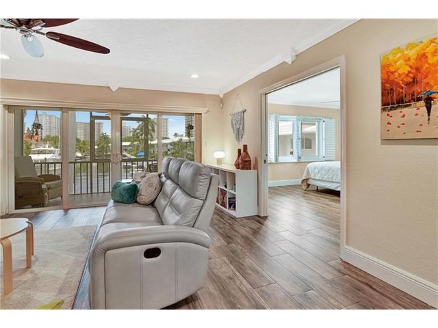 Beautifully updated 2BR/2BA waterfront condo on a wide canal just steps from the Galt Mile beach. This beautifully upgraded residence features impact windows/doors, wood-look tile, upgraded kitchen with stainless appliances, upgraded baths, full-size washer/dryer, tankless water heater, and modern finishes throughout. Enjoy serene water views from the screened balcony. Boat dockage available through the association at an amazingly low cost of just $32 per YEAR! Deep water and direct intracoastal access make this condo a boater's dream. Prime walkable location near dining, cafés, shopping, and the best of coastal Fort Lauderdale living. This is an ideal location for just about any lifestyle or activity level. You simply can't beat it. Turn key sale. Just bring your toothbrush and clothes!