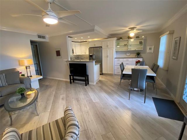 FIRST FLOOR UNIT! 2 BEDROOM, 1.5 BATH,OPEN KITCHEN WITH GRANITE COUNTERTOPS, CUSTOM PANTRY, STAINLESS STEEL APPLIANCES, TASTEFULLY FURNISHED, CROWN MOLDING. GUEST BATH IS REMODELED, MASTER BATH HAS WALK IN SHOWER, CLOSETS HAVE CUSTOM BUILD IN FEATURES, ALL WINDOW OPENINGS HAVE ACCORDION HURRICANE SHUTTERS, PATIO IS ENCLOSED, BUILDING HAS NEW ROOF AND ELEVATOR, PARKING IN FRONT OF UNIT, SHORT WALK TO PLAZA, CLUBHOUSE AND BERKSHIRE POOL. THIS UNIT IS PRICED TO SELL! CLUBHOUSE HAS LIVE SHOWS, CRAFT ROOMS, FITNESS CENTER, NEW ZERO ENTRY POOL, FREE SHUTTLE TO MALLS AND GROCERY STORES, CAFE ON PROPERTY. PROOF OF FUNDS MUST ACCOMPANY ALL OFFERS SEE SHOWTIME FOR ACCESS. SEACREST MANAGED FEE $431.80 CVEMM $185, CENCLUB $120 MAINTENANCE INCLUDES CABLE TV, WATER, SEWER, TRASH & BLDG RESERVES