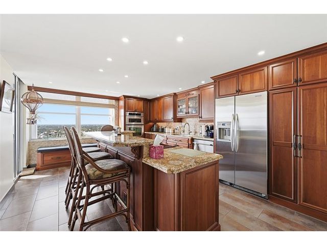 Spacious 2BR/2BA with great potential to update to create your ideal coastal retreat. Two Large private balconies with hurricane shutters and impact glass doors offering stunning ocean and intracoastal views. Perfect for enjoying sunrise and sunset. Distinctive details include wood columns, mirrored accents, crown molding, and ample storage. The kitchen features SS appliances, induction cooktop, wine cooler, oversized sink, pull out pantry drawers, appliance garage, and a versatile convection/microwave/oven. Primary bath offers a steam shower and bidet. Full size W/D plus a convenient service entrance to the kitchen. Semi-private elevator lobby shared with one unit. Building offers fully funded reserves, completed 40 & 50 yr certifications, no pending assessments, valet, and cable included