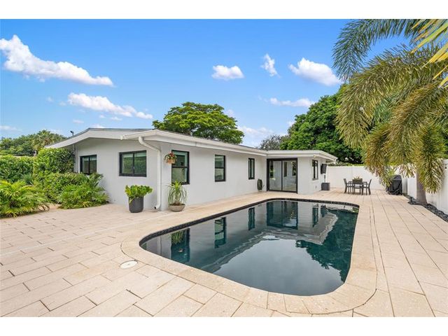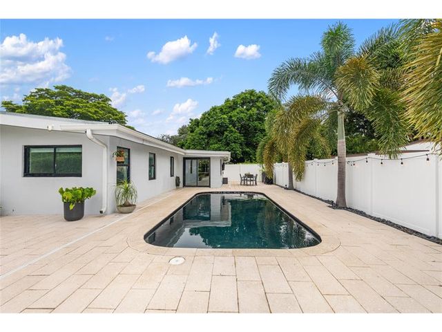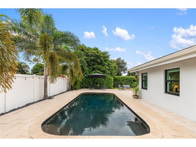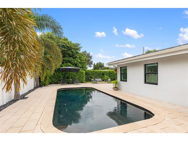 Beautiful 4-bed, 3-bath home in the Country Club Estates neighborhood that sits on 1/4-acre lot, with direct view of the Fort Lauderdale Country Club Golf Course. The home has been meticulously updated, ensuring a move-in ready experience. Brand new kitchen cabinets, quartz countertops, new appliances, LVP flooring, baseboards, interior doors, trim, paint, a custom-built bar with marble countertops and a dedicated wine fridge. The pool was resurfaced in 2025. 2-car garage features a durable epoxy floor, and includes impact front door and windows (2021), a new roof (2021), and an updated electric panel (2021) and HVAC (2019). Don’t miss the chance to own this slice of paradise in Country Club Estates.